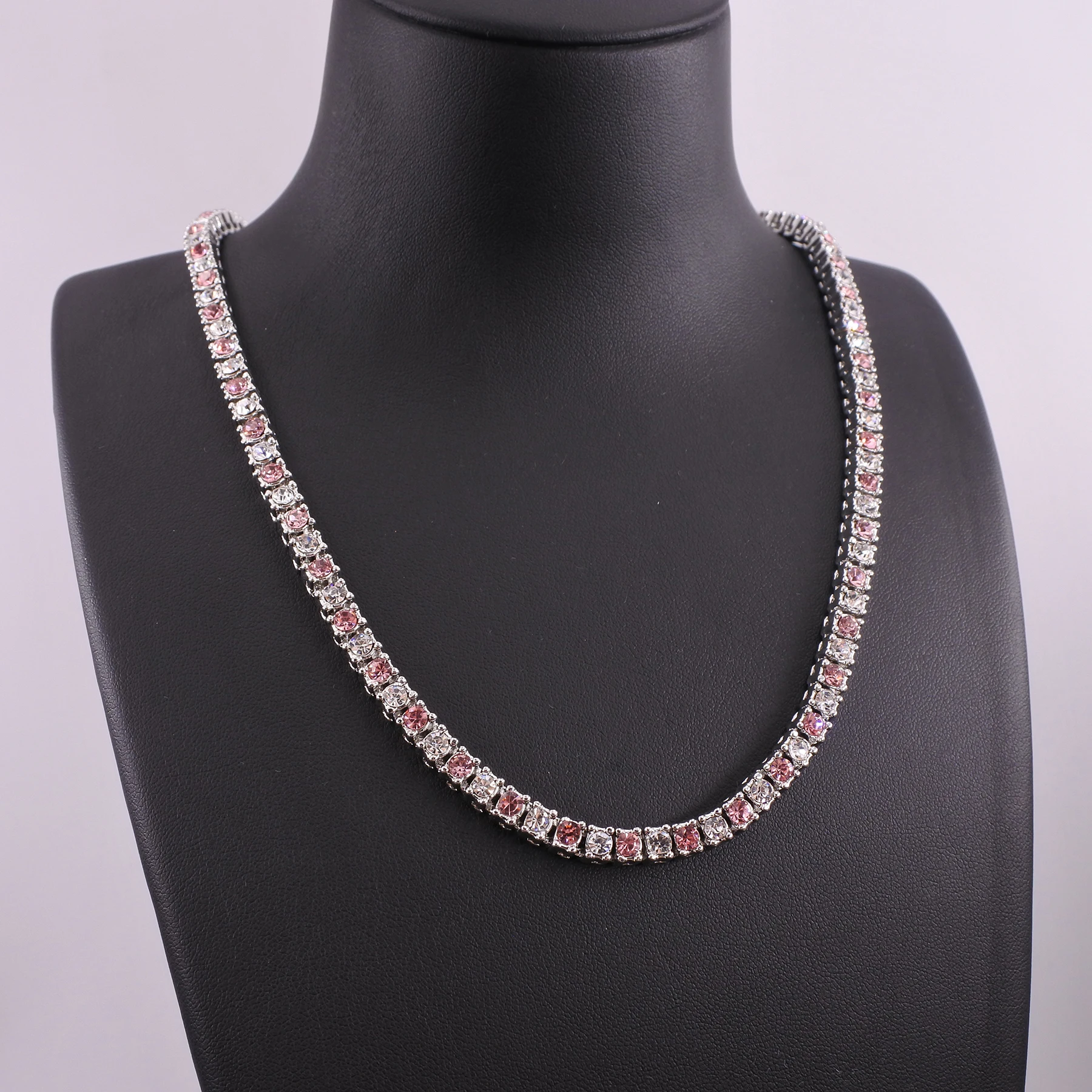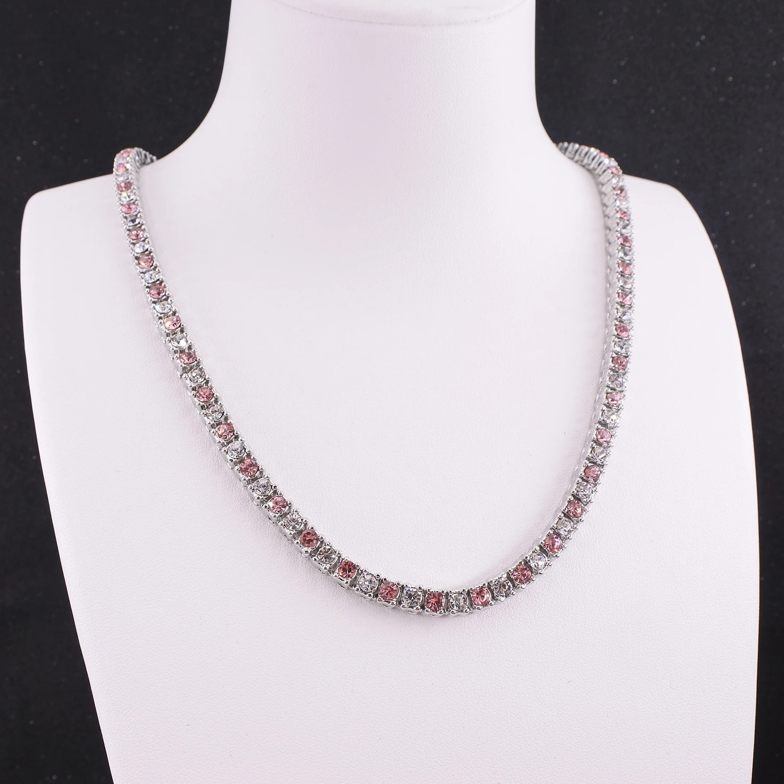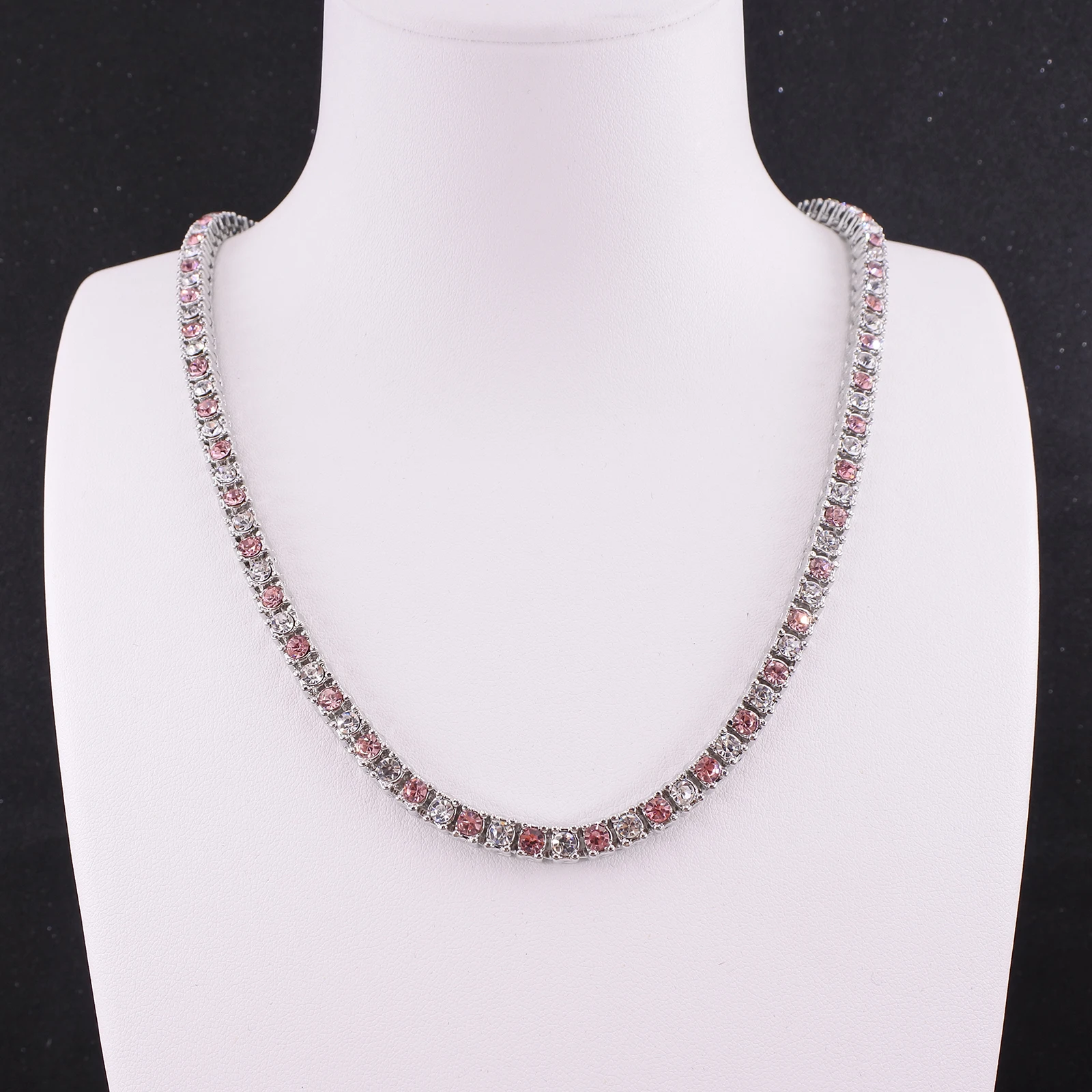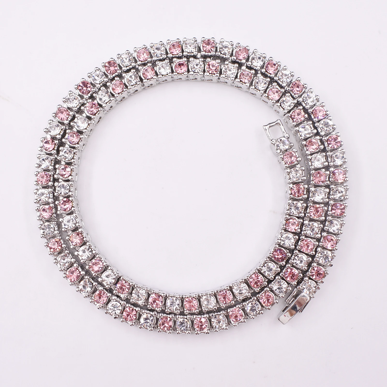 hip hop choker iced out 1 row tennis chain necklace for women 5mm bling pink blue crystal silver color rapper singer jewelry