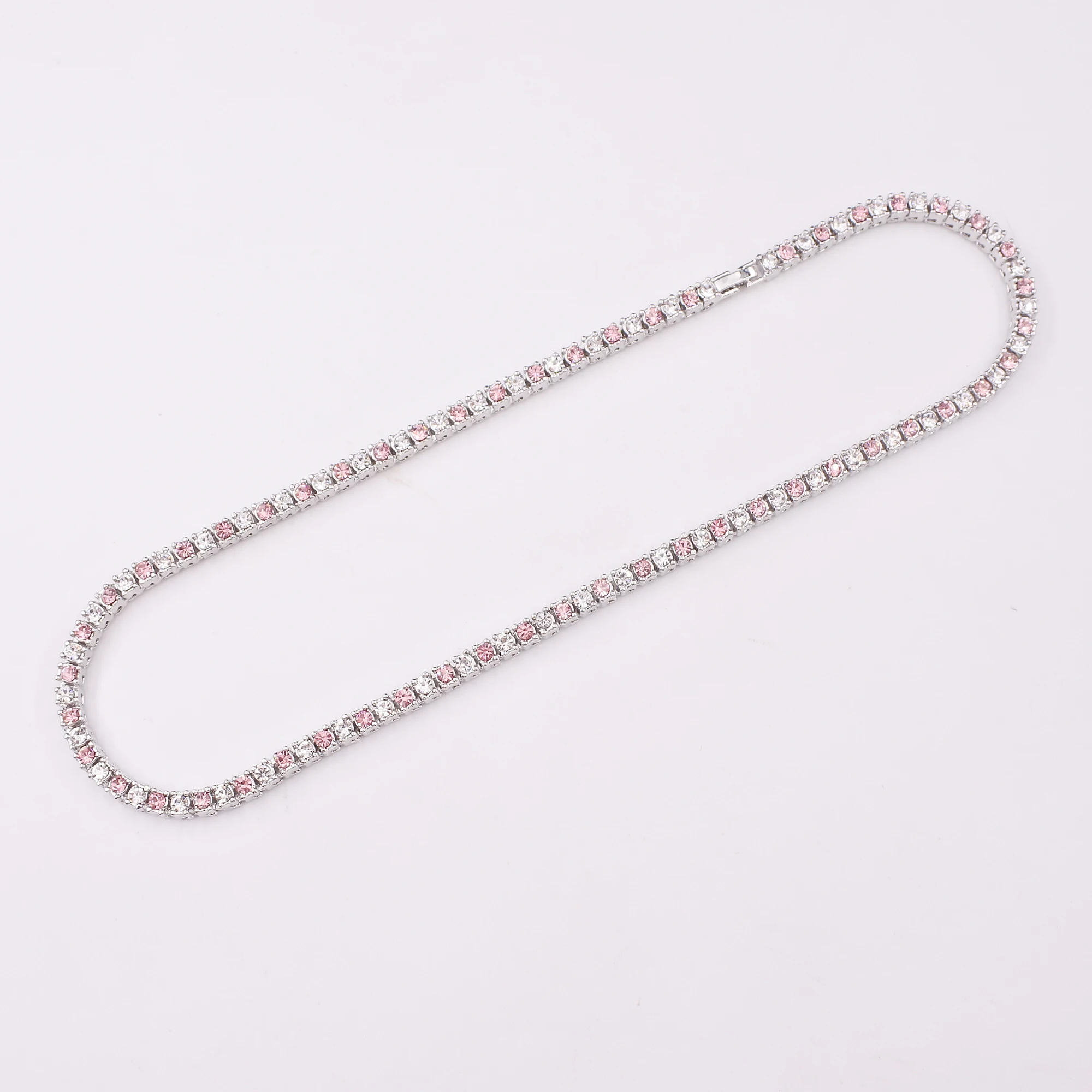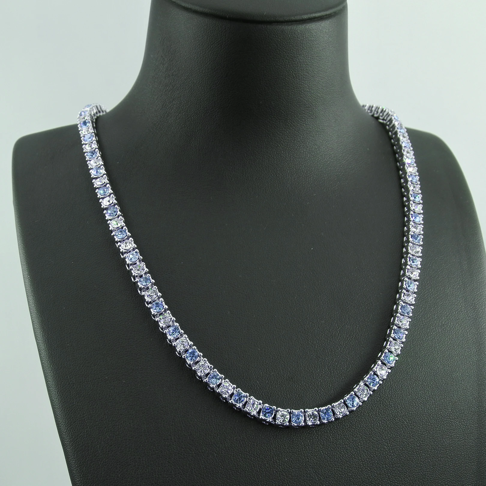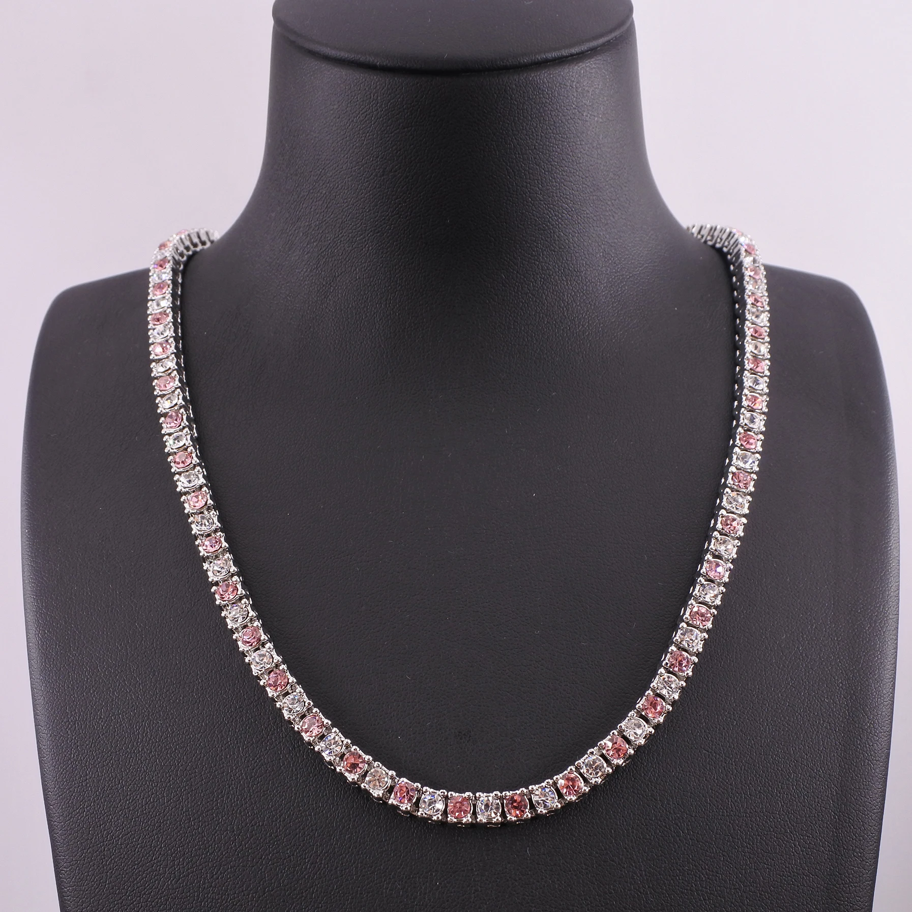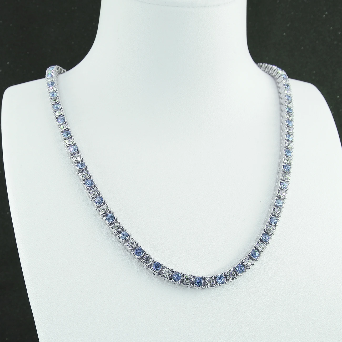 hip hop choker iced out 1 row tennis chain necklace for women 5mm bling pink blue crystal silver color rapper singer jewelry