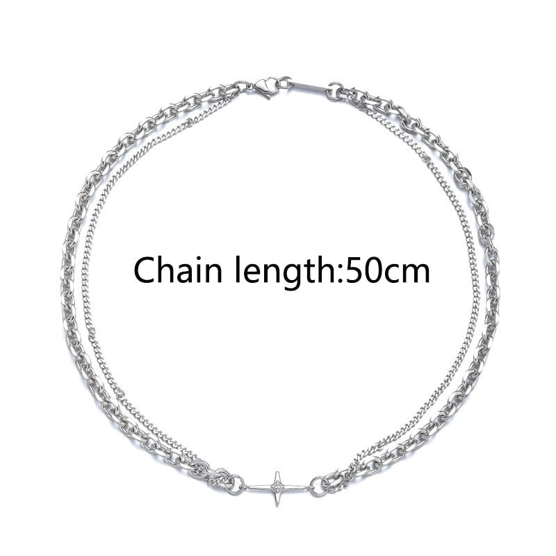Hip Hop Cross Titanium Steel Chain Choker Necklace for Women/Men Double Layer Splicing Collar Necklaces Trend Charm Jewellery