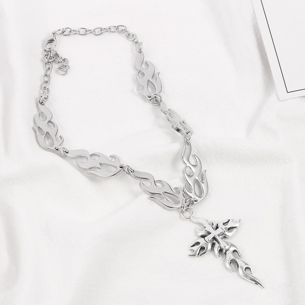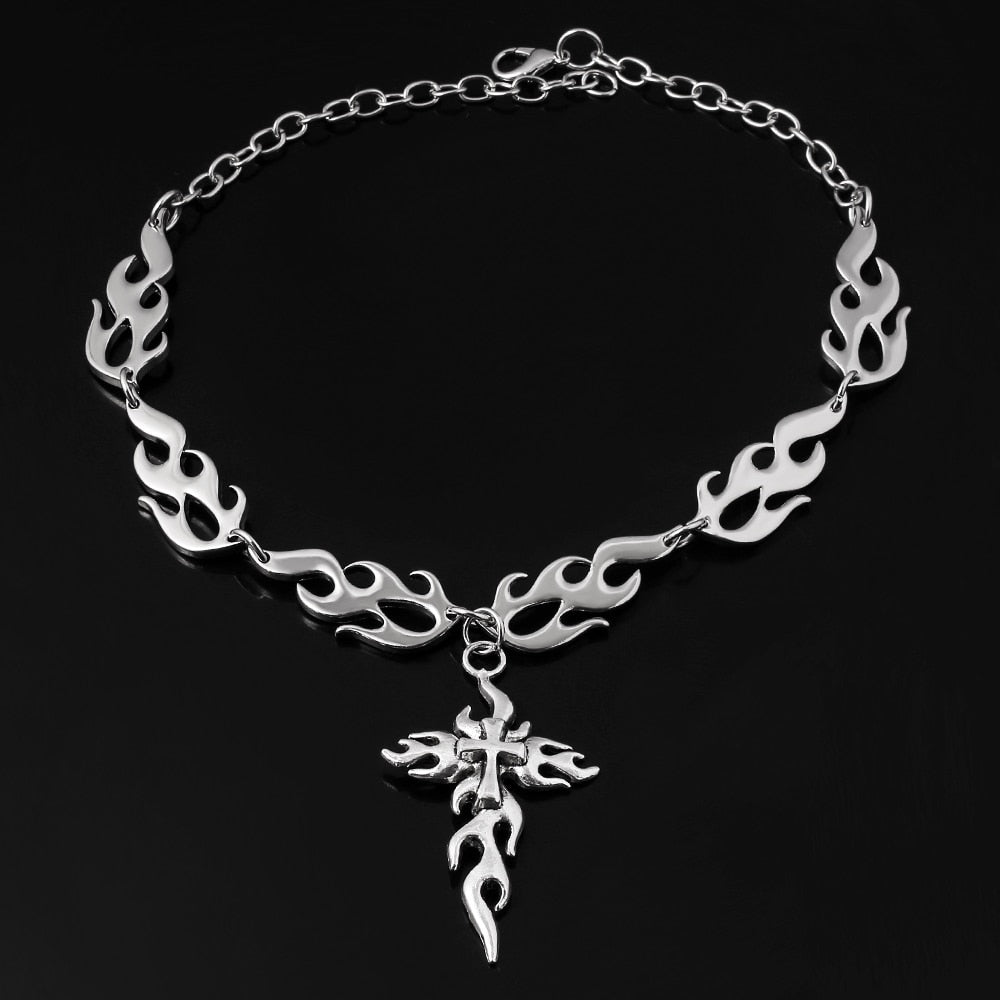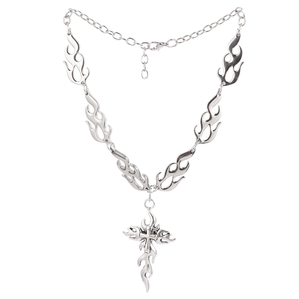 Hip-hop Flame Harajuku Cross Choker Necklace Rock Cool Man Women Collar Punk Gift Party Bar Charm Jewelry Trendy