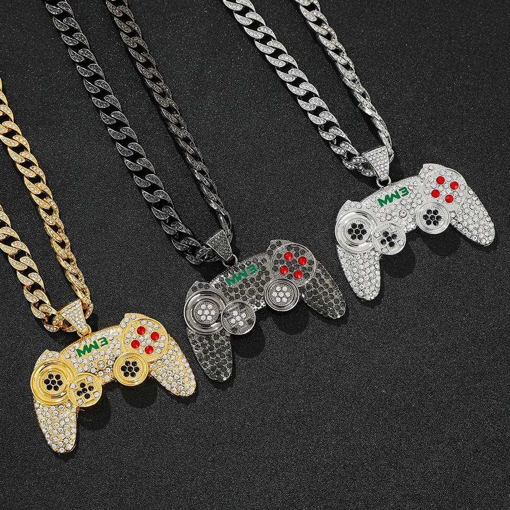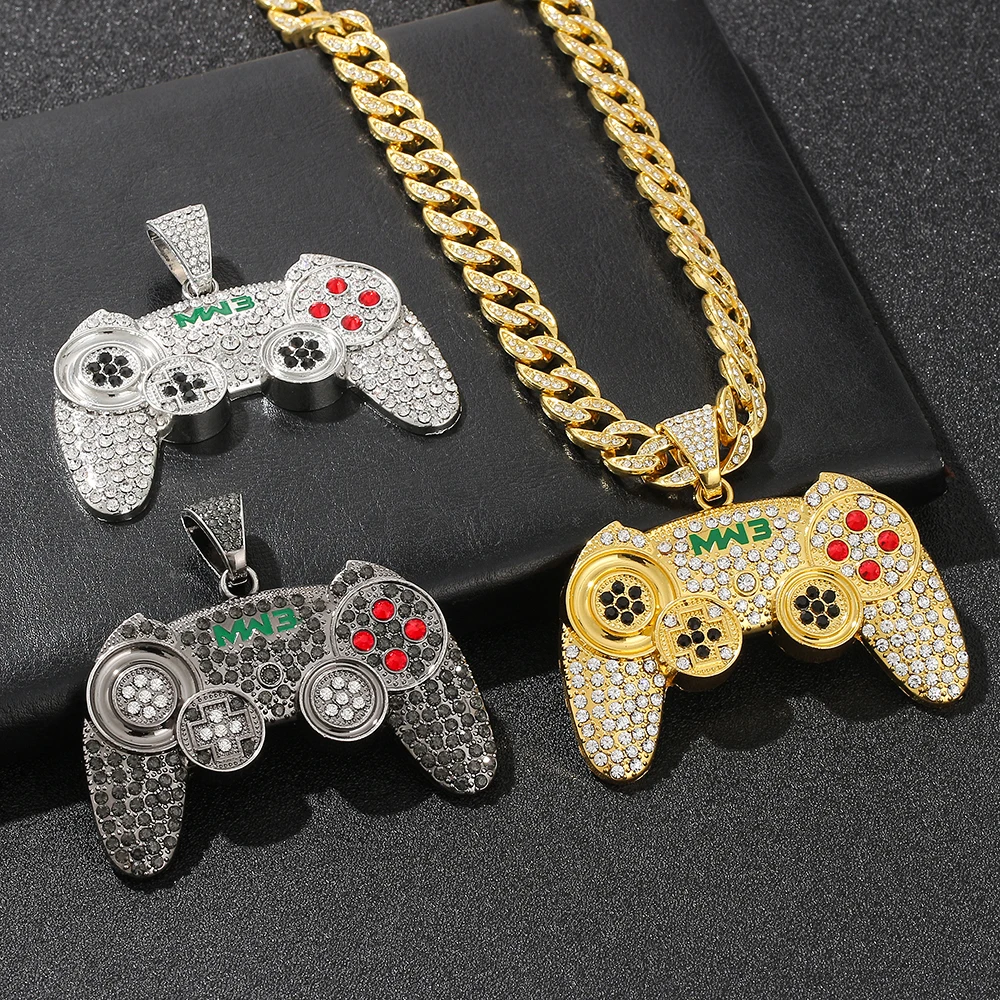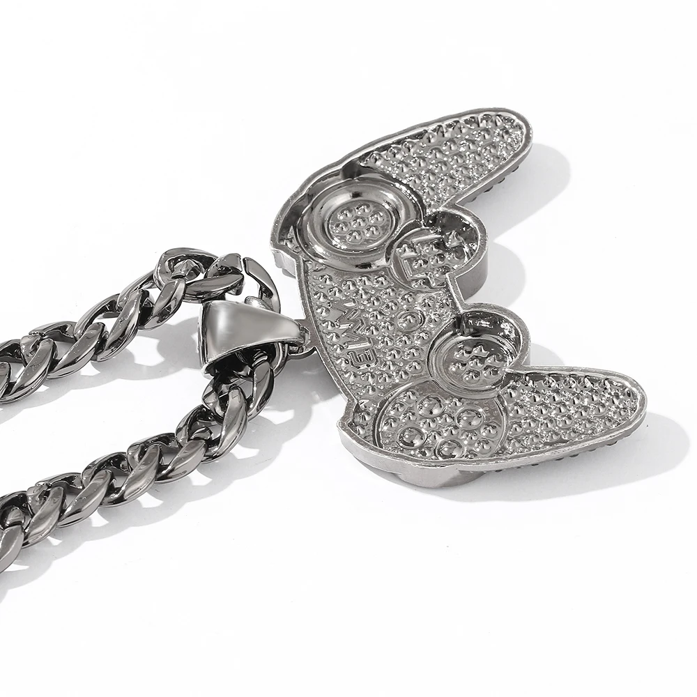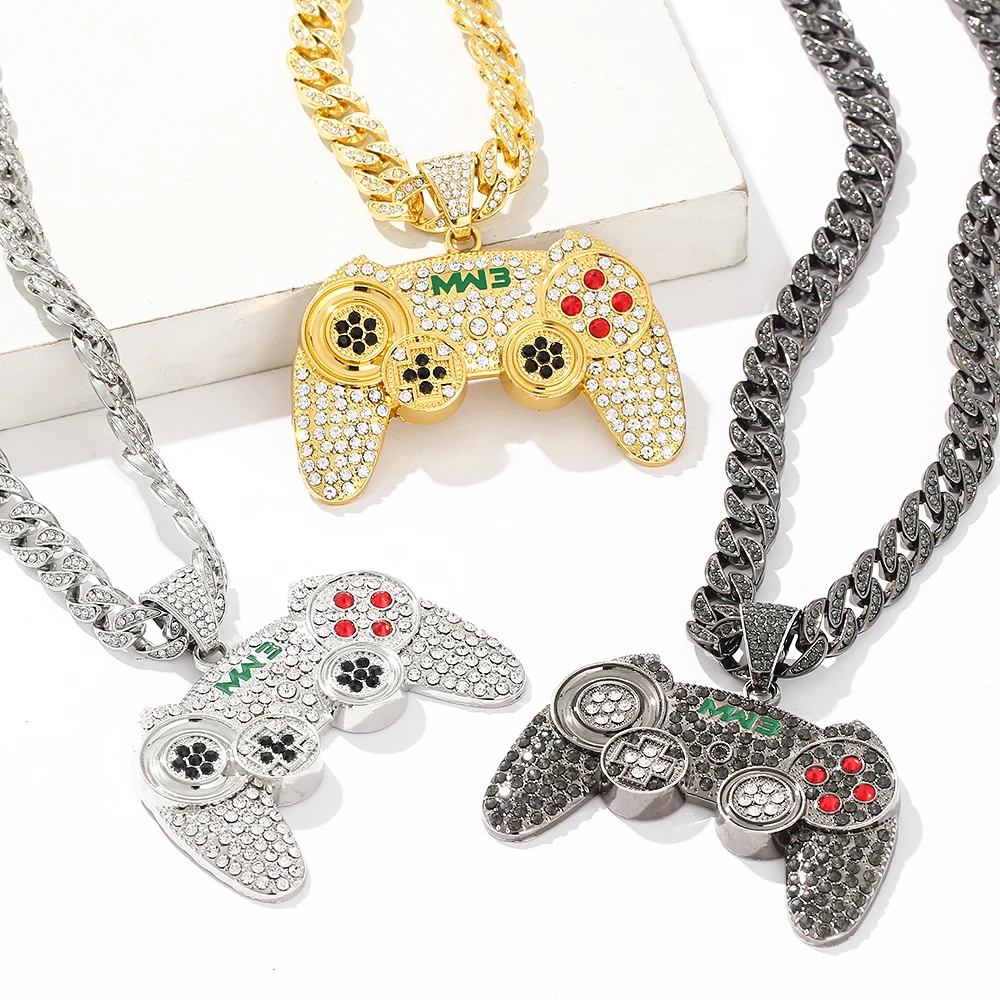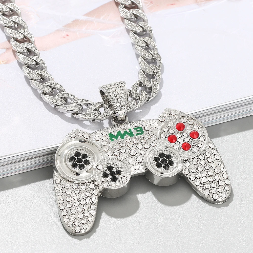 Hip-hop Gamepad Iced Out Pendant Necklace Cool Miami Cool Motorcycle Necklace Thick Cuban Chain Jewelry Accessories