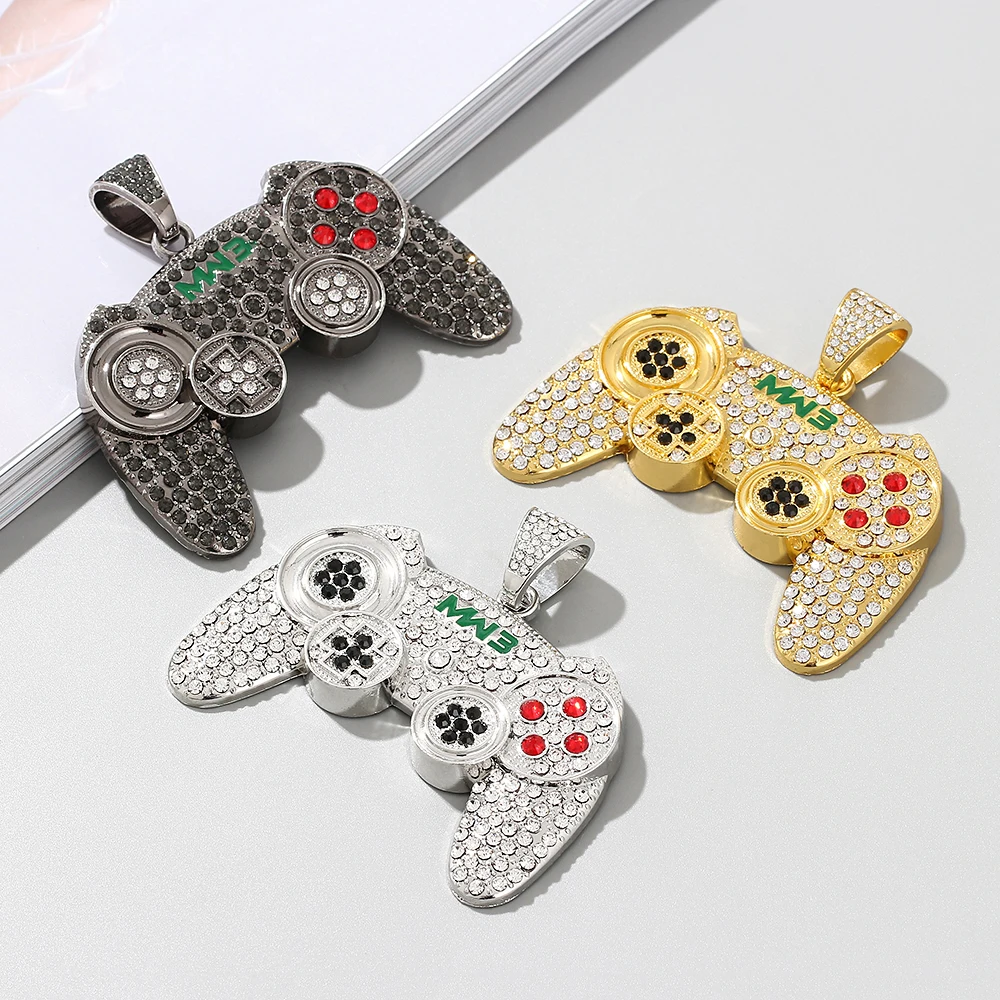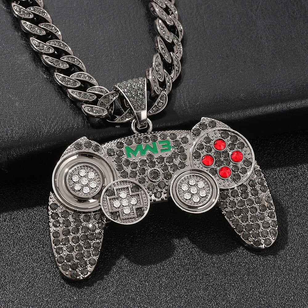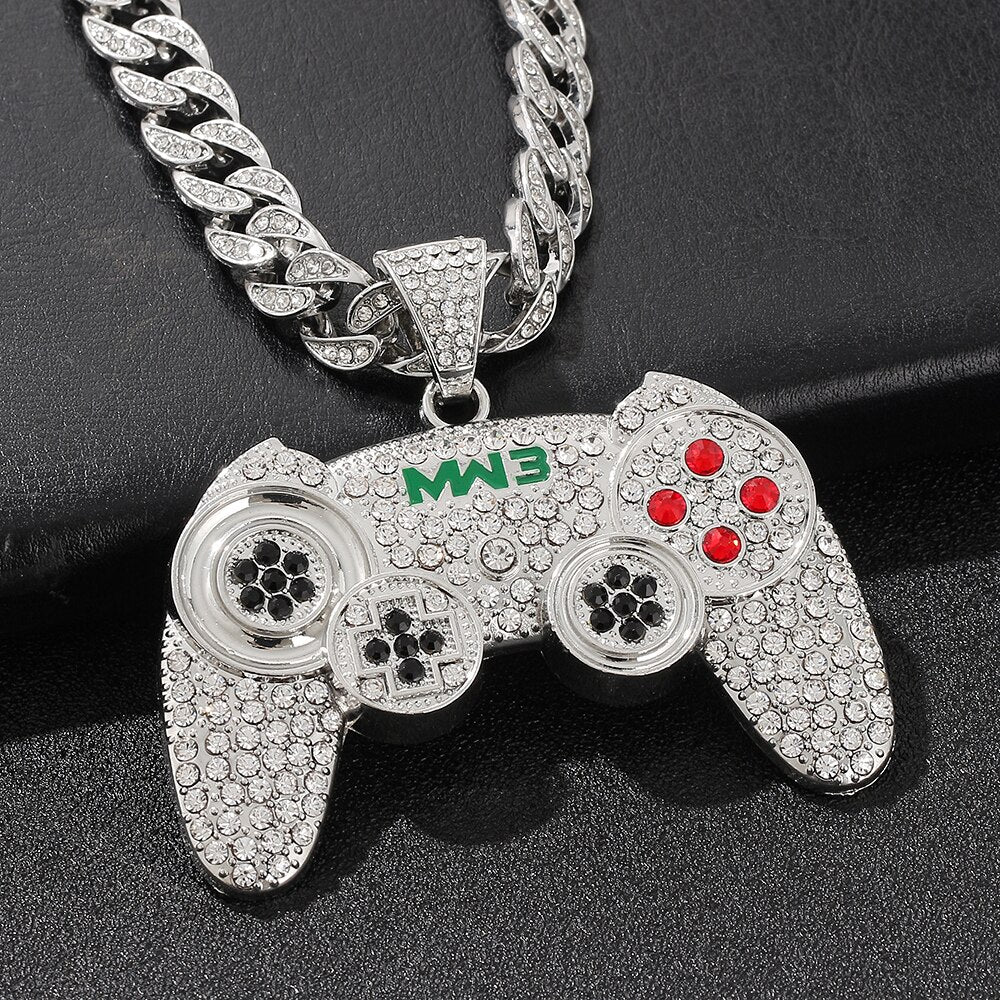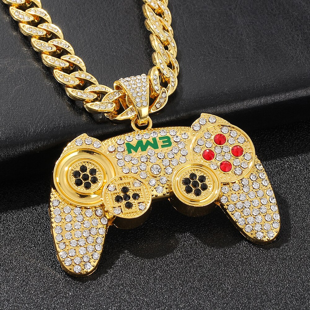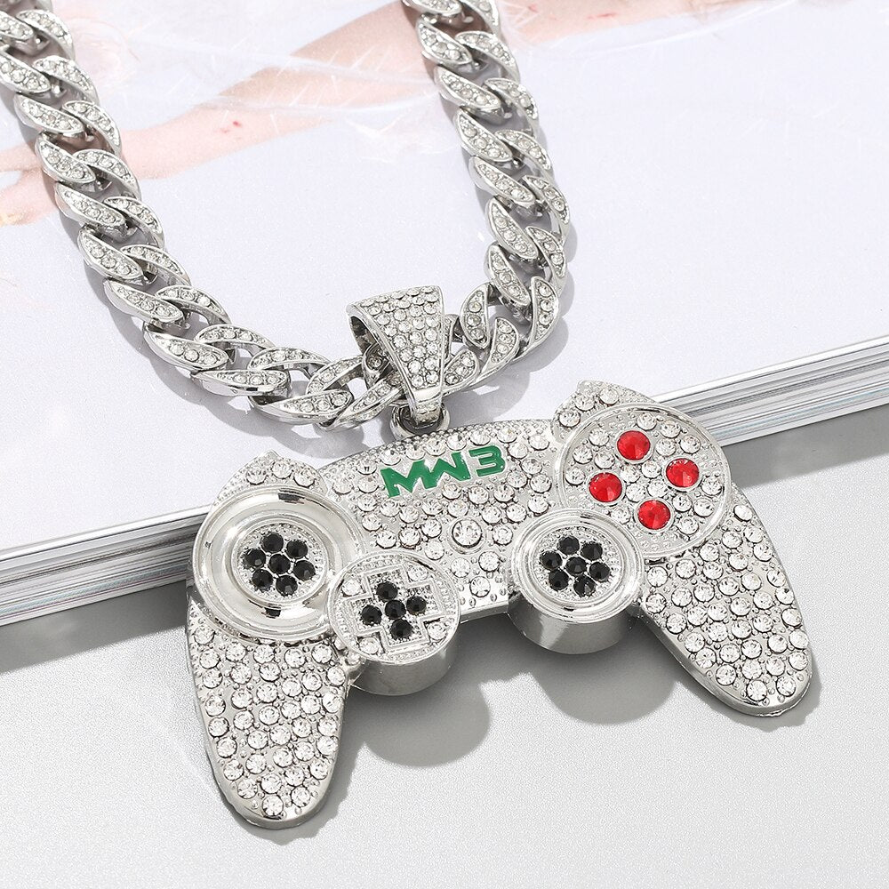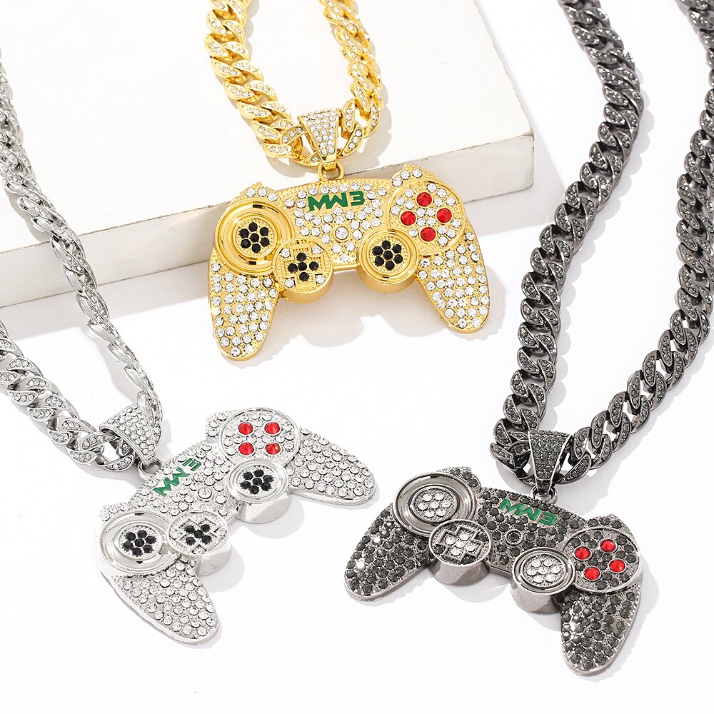 Hip-hop Gamepad Iced Out Pendant Necklace Cool Miami Cool Motorcycle Necklace Thick Cuban Chain Jewelry Accessories