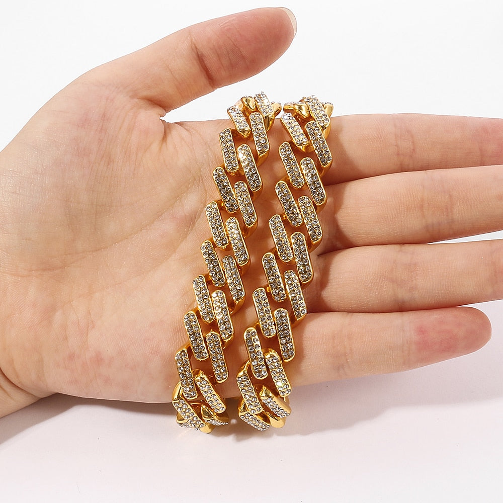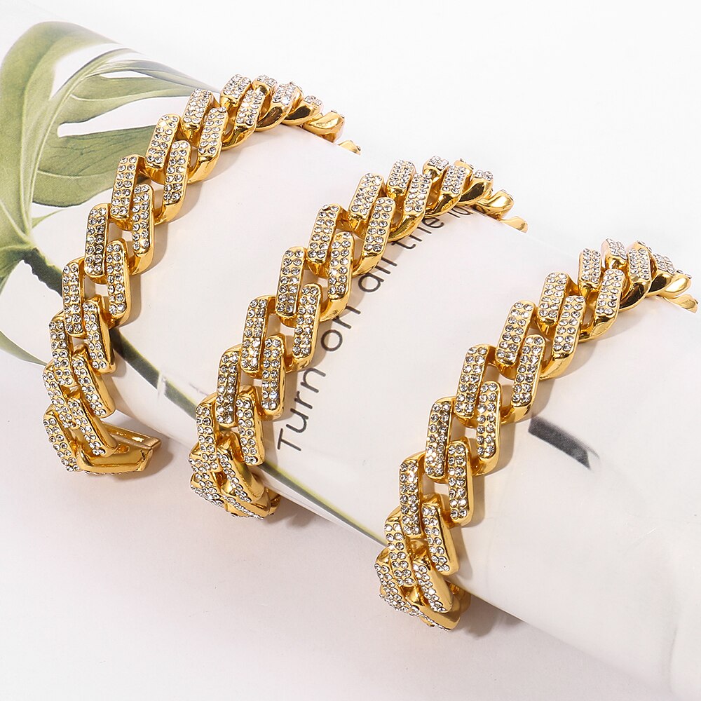 Hip-Hop Glittering Rhinestone Thick Chain Necklace Punk Miami Cuba Necklace Necklace Collar Men's Women's Jewelry