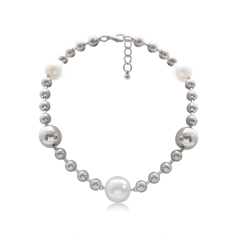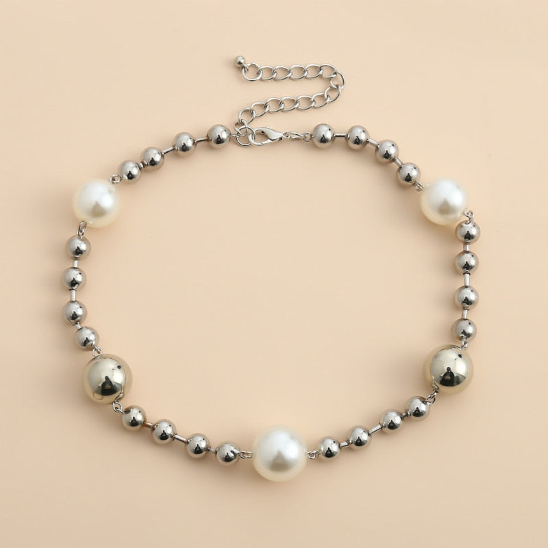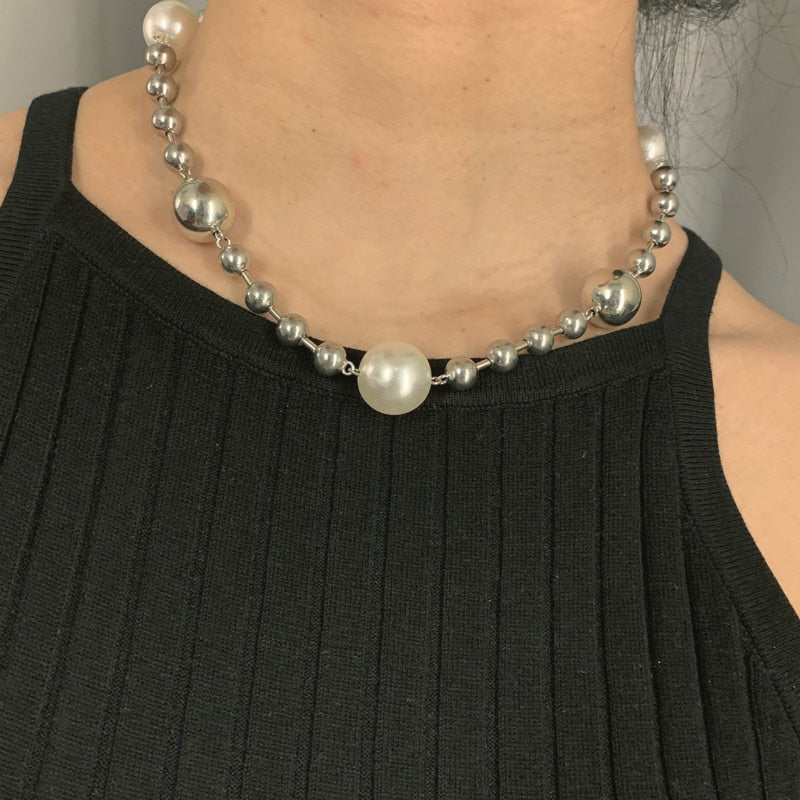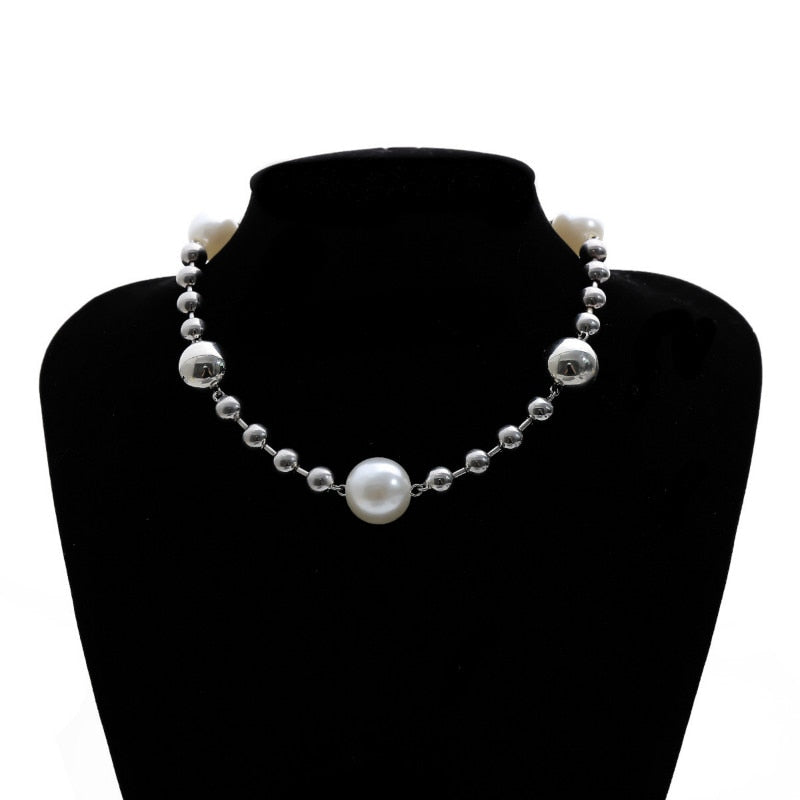 Hip Hop Necklace Zinc Alloy Round Bead Chain Choker Necklace For Women Trendy Statement Pearl Necklaces Women's Hip Hop Jewelry