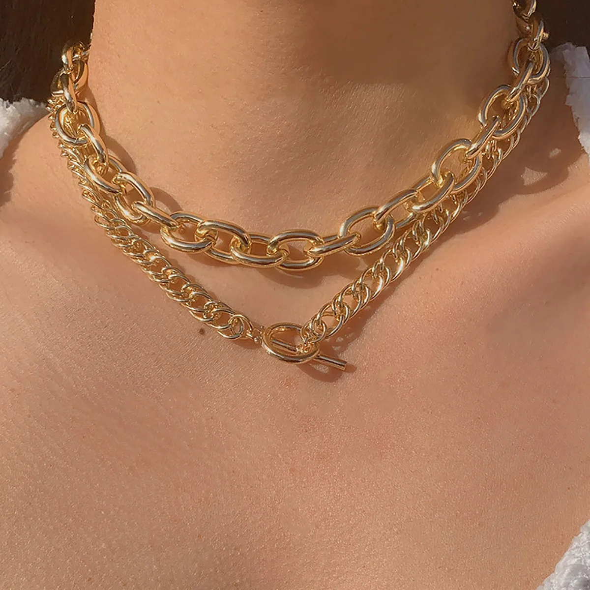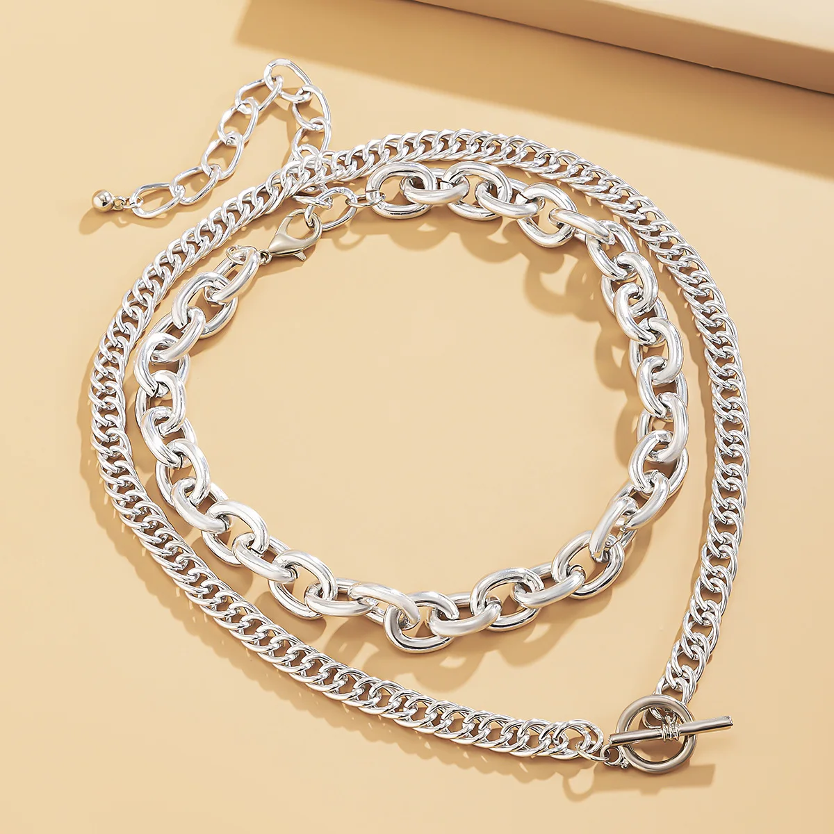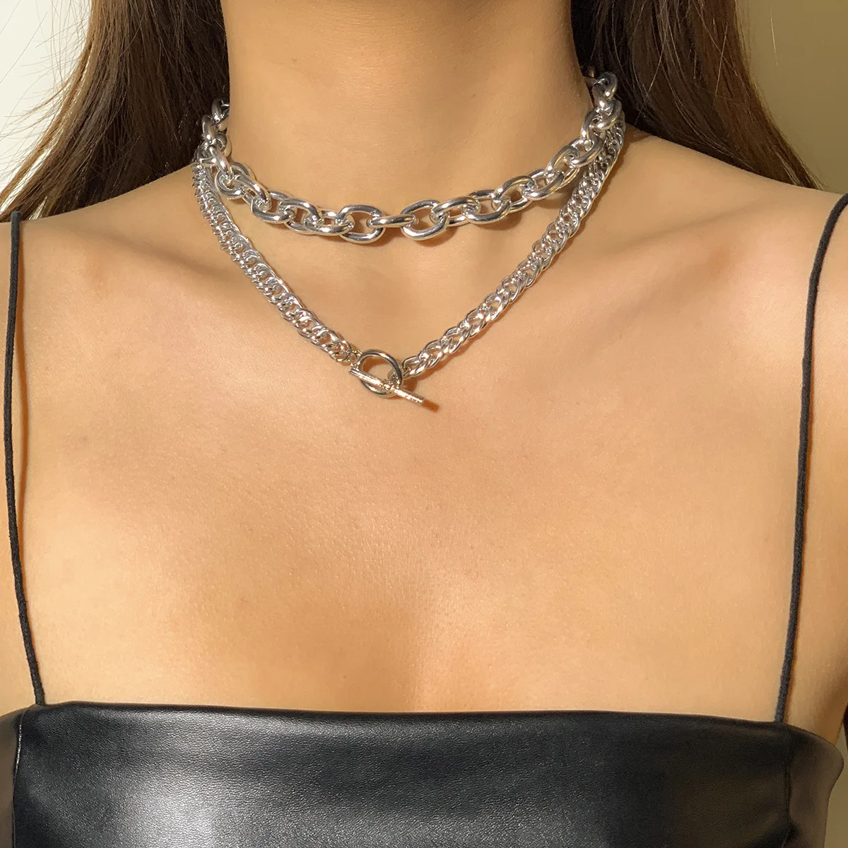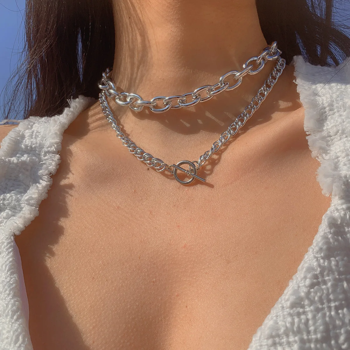 Hip Hop OL Style Cuban Thick Cross Men's Necklace Punk Metal Aluminum Chain Clavicle Necklaces Girl Party Jewelry