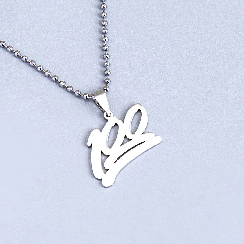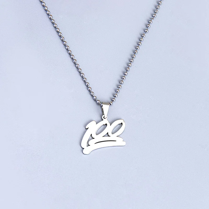 Hip Hop Rock Men Necklace Stainless Steel Number 100 One Hundred Pendant Necklaces Jewelry Accessories