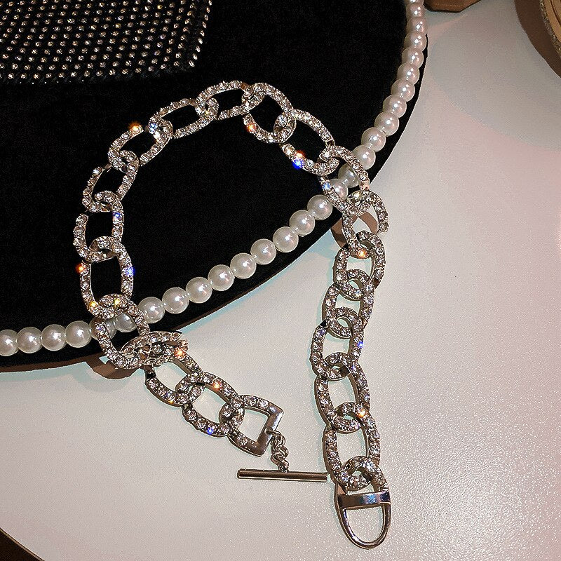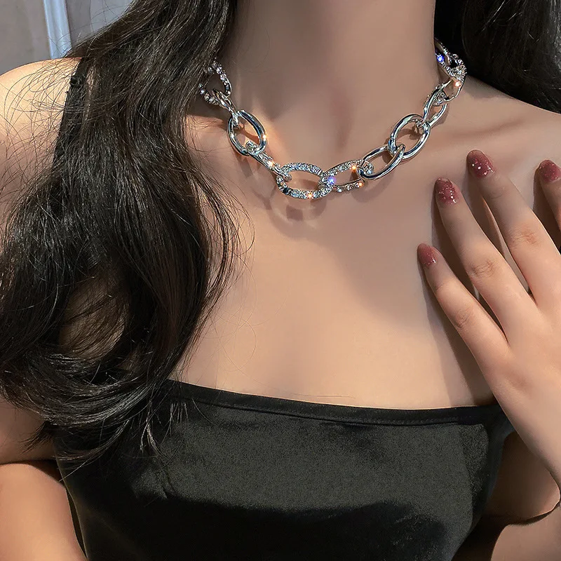 Hip Hop Style Shiny Necklaces For Women Metal Clavicle Necklace Full Rhinestone Chokers Punk Jewelry Gifts