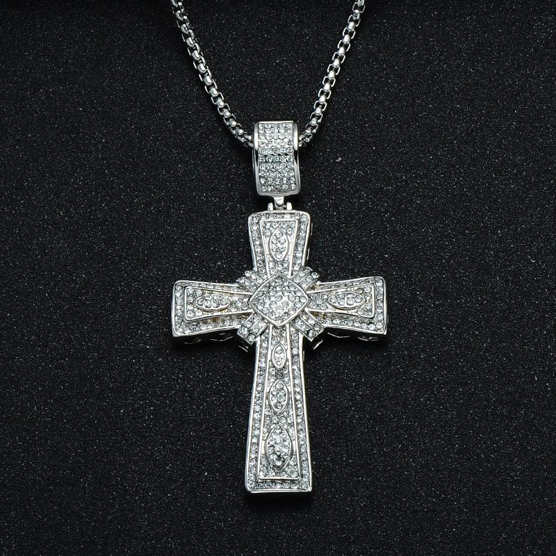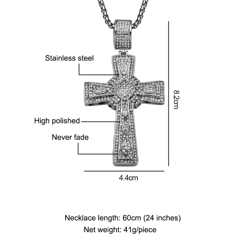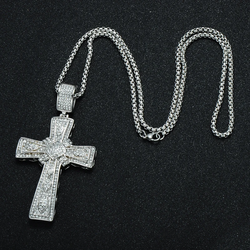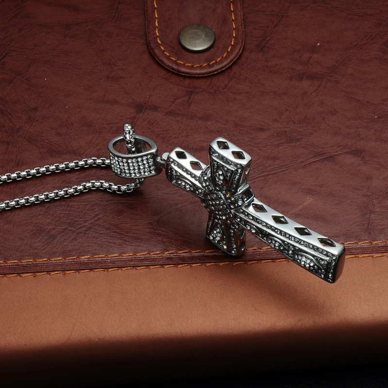 Hop Titanium Stainless Steel Full Micro Pave Rhinestone Iced Out Bling Cross Pendants Necklaces for Men Jewelry