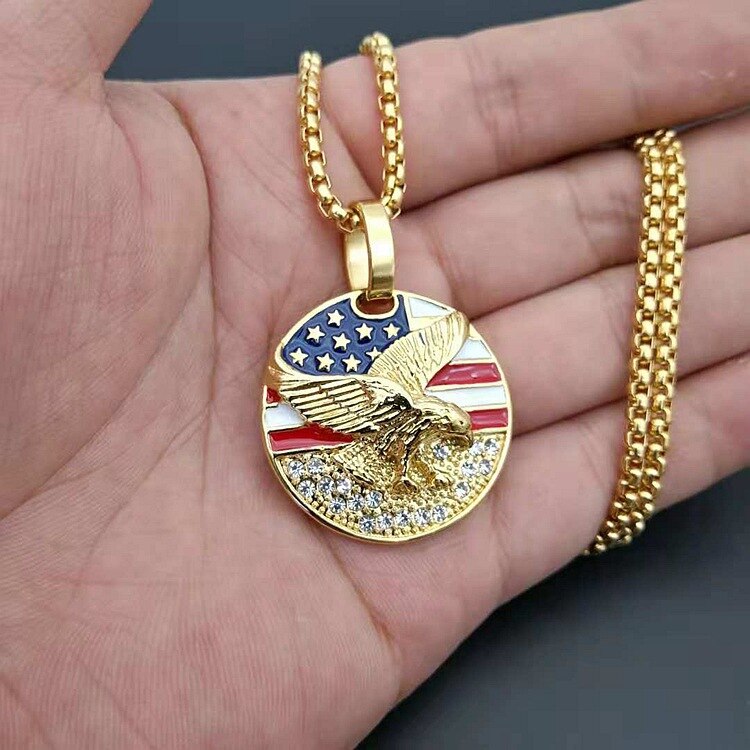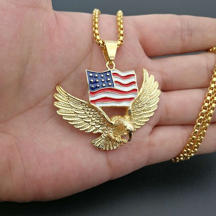 Hiphop American Flag Eagle Pendant 4 Size Stainless Steel Chain Military Soldier Men's Necklace Golden Neck Jewelry