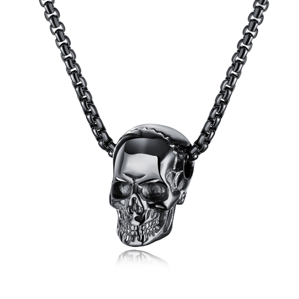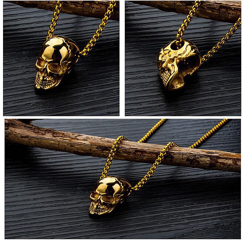 HNSP Gothic Skull Pendant 3MM Stainless Steel Chain Necklace For Men Women Neck Punk Halloween Jewelry
