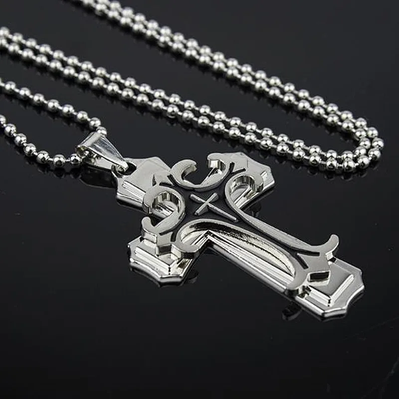 HNSP Multilayer Jesus Cross Chain Necklace Pendant For Men Women Neck Gold Black Blue Silver Color Male Gift