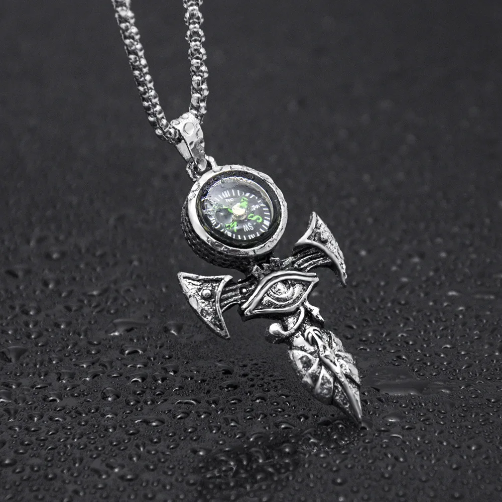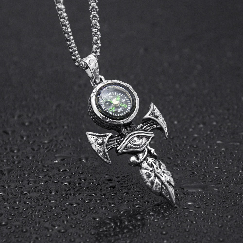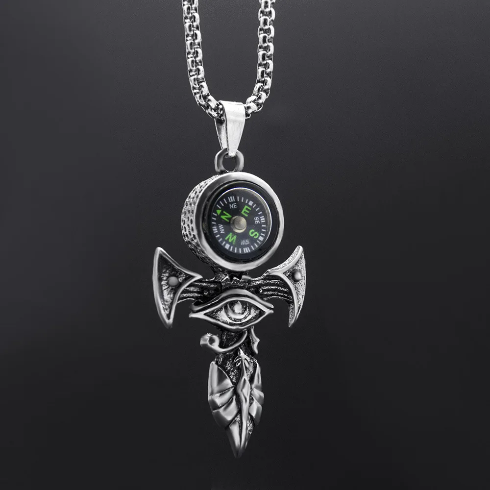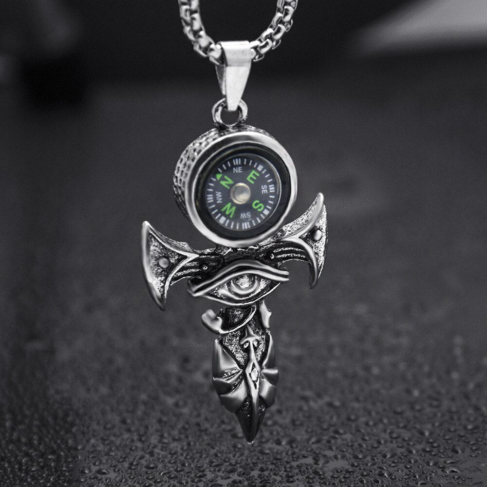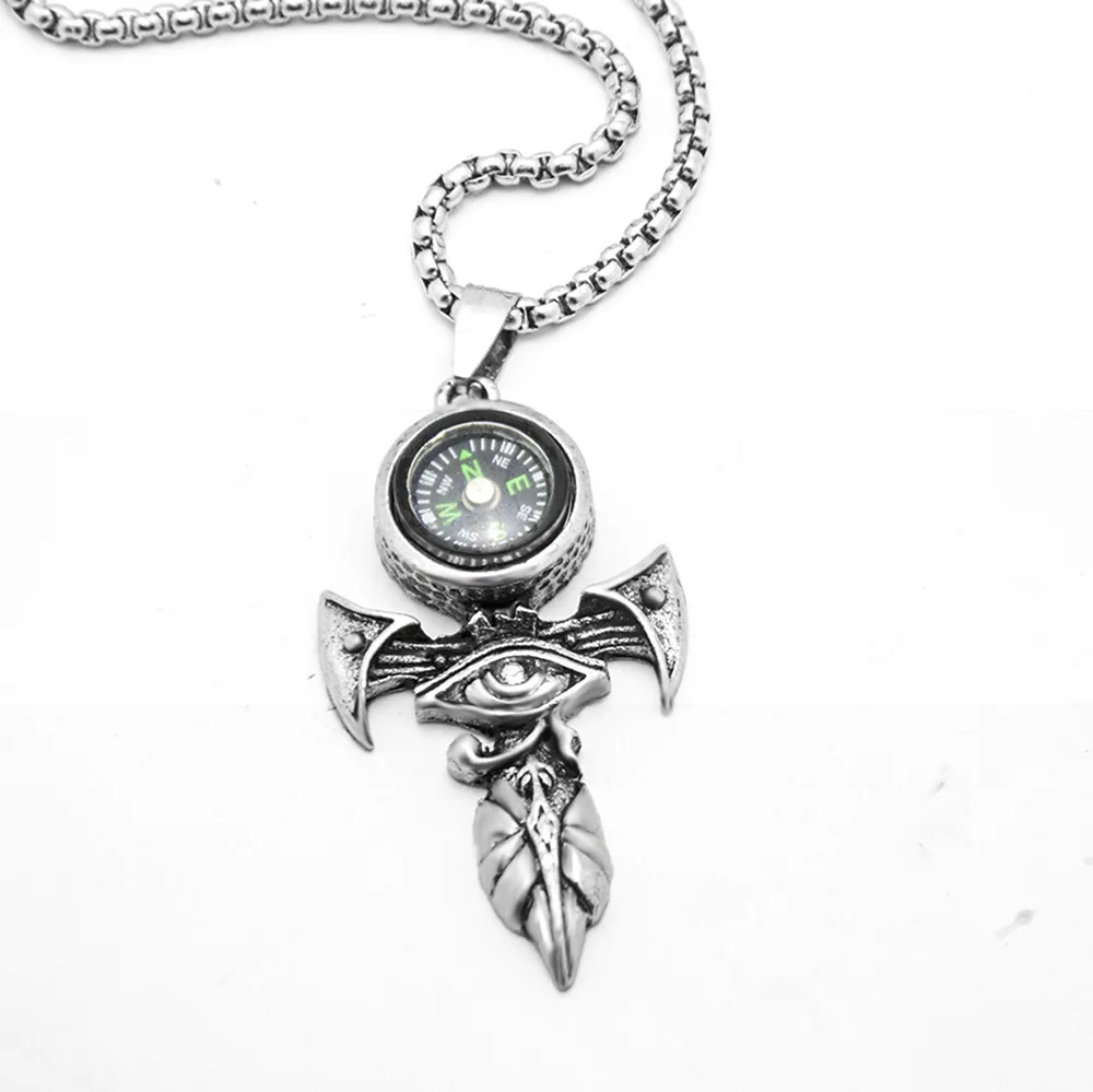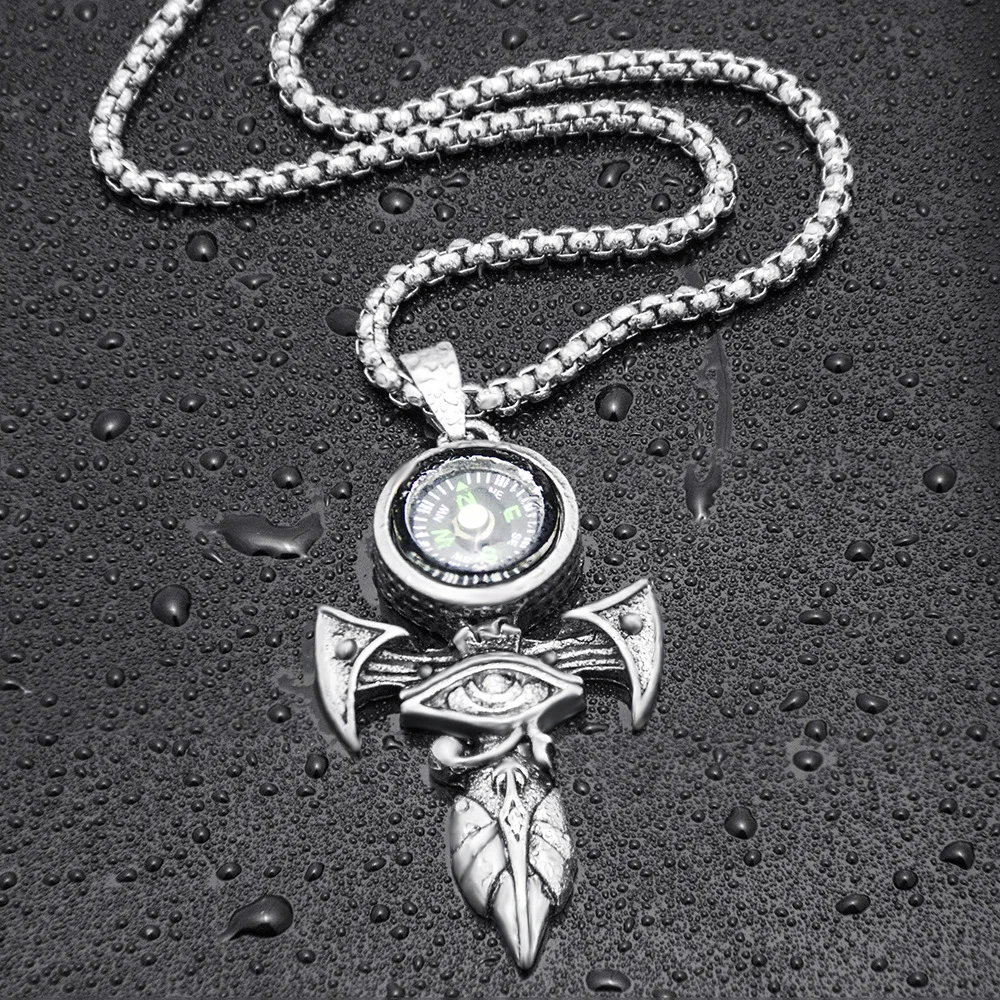 HNSP Viking Compass Eye of Horus Cross Chain Pendant Necklace For Men Male Neck Punk Gothic Jewelry