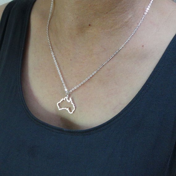 hollow Outline Australia National urban geography Map Necklace - Sydney, Melbourne, Perth, Brisbane, Tasmania Geek jewelry