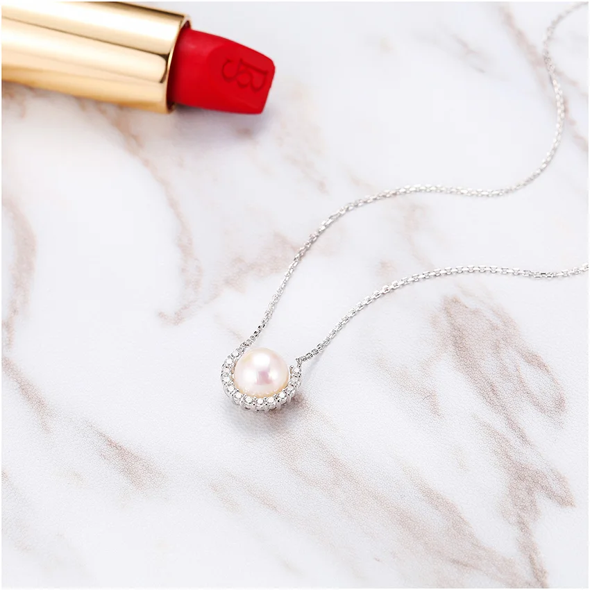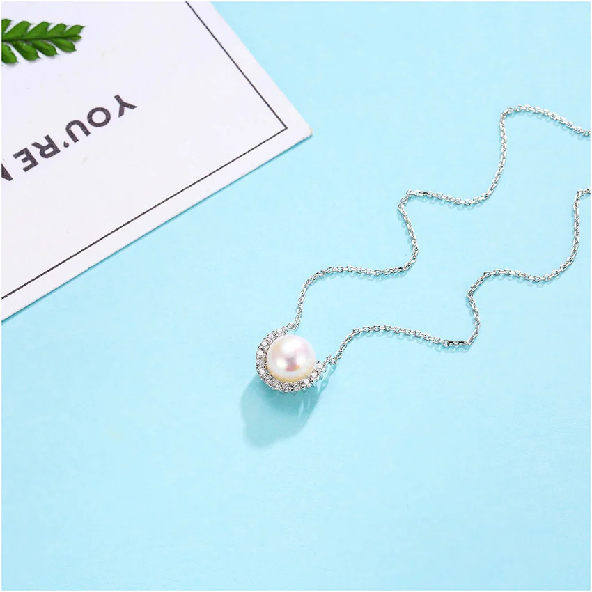 2020 New Simple Pearl Necklace Women 100% Silver 45cm Chain with 8 mm Natural Pearl Pendant Jewelry Necklace