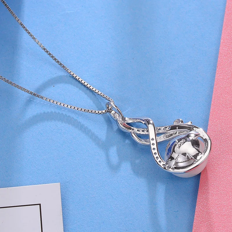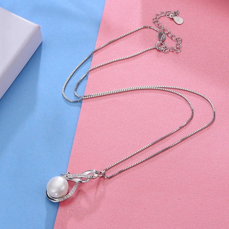 925 Sterling Silver with Natural Pearl Cute Bowknot Necklaces & Pendants Shiny Zircon Charm Party Accessories for Women