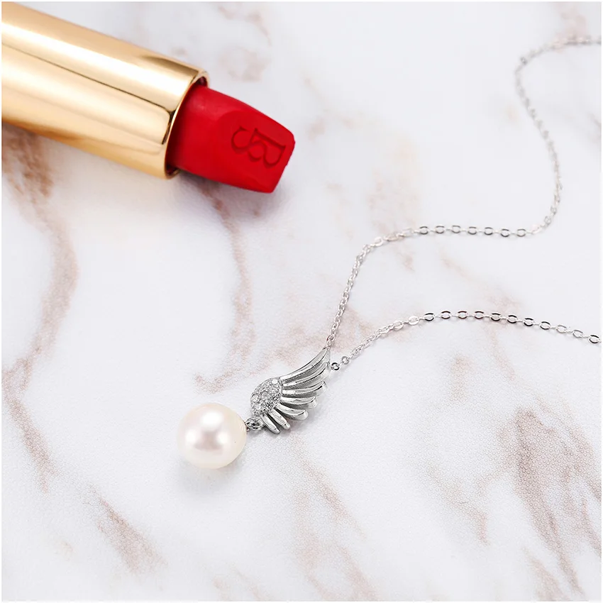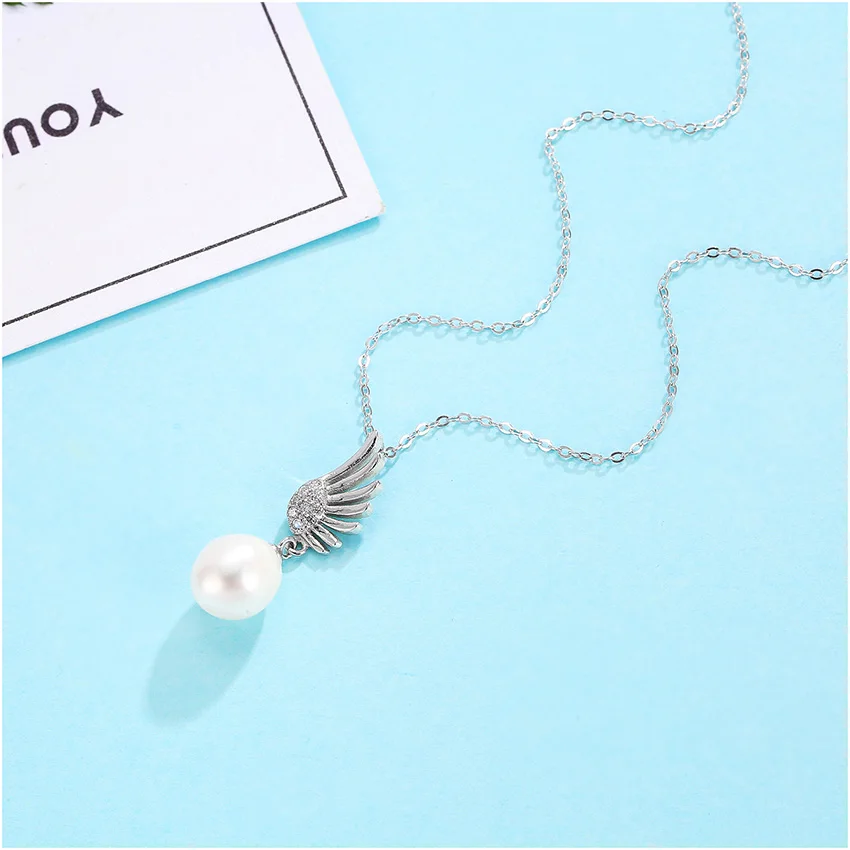 Fashion Angel Wings Pearl Pendant Necklace Newest Design Real Pearl with 925 Sterling Silver Jewelry Best Gift