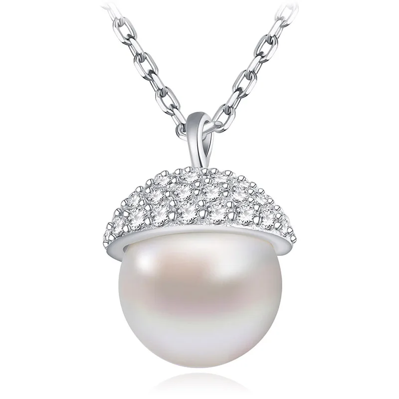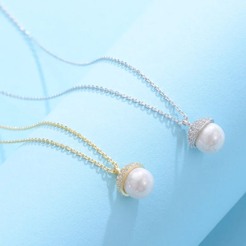 New Arrival 925 Sterling Sliver Elegant Pinecon Nature Pearl Pendant Shiny AAA Zircon Necklace for Women Party