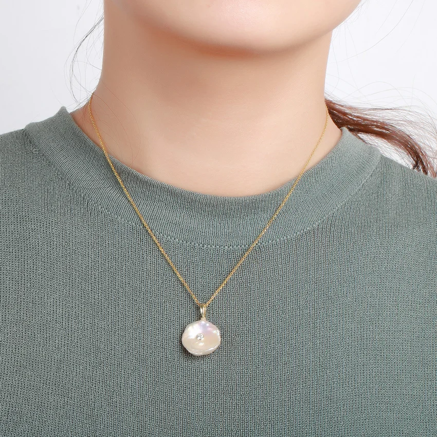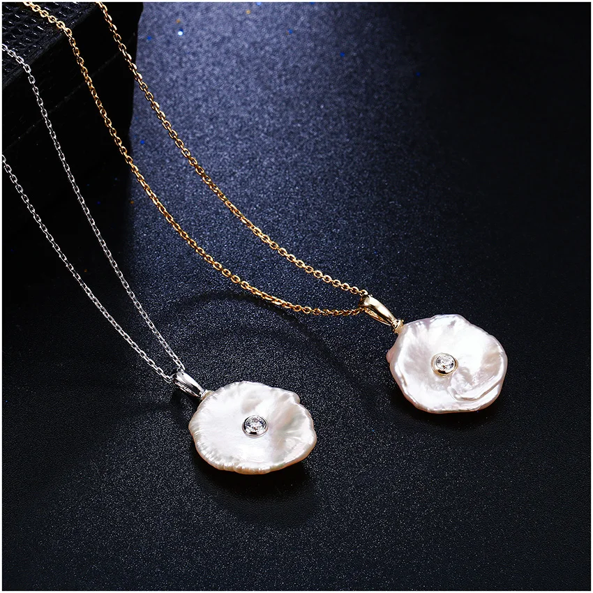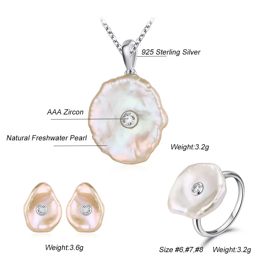 925 Silver Jewelry Sets for Women Natural Pearl Stud Earrings Flat Baroque Necklace Jewelry Set Wedding Gift