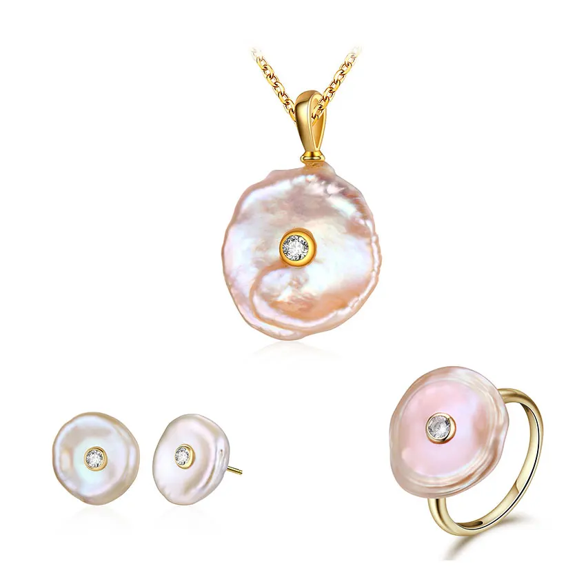 • pearl jewelry: freshwater pearl flat baroque jewelry set