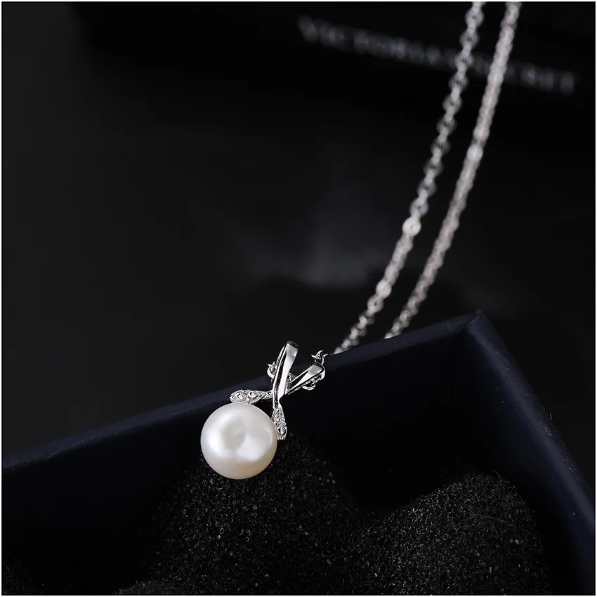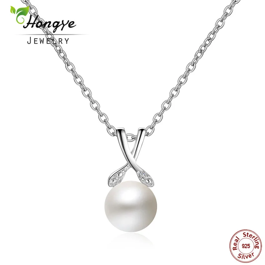 Pure Luxury Collares 925 Sterling Silver Cross Link Chain Natural Pearl Necklaces & Pendants for Women Party