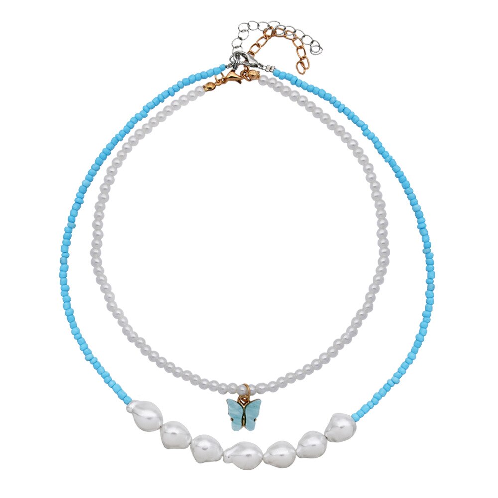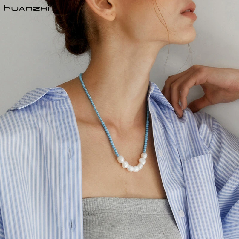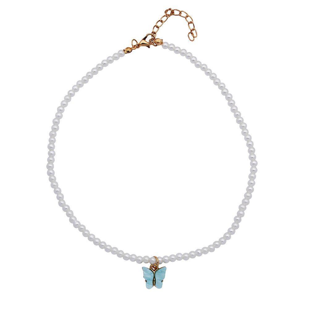 HUANZHI 2021 Alien Irregular Pearl Acrylic Resin Bead Butterfly Pendant Clavicle Chain Necklace for Women Party Jewelry