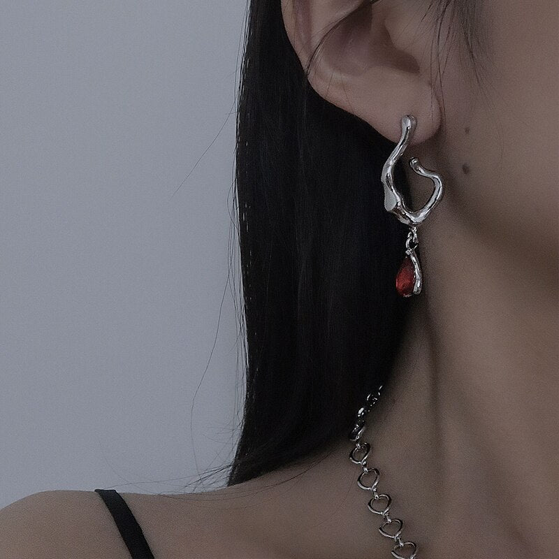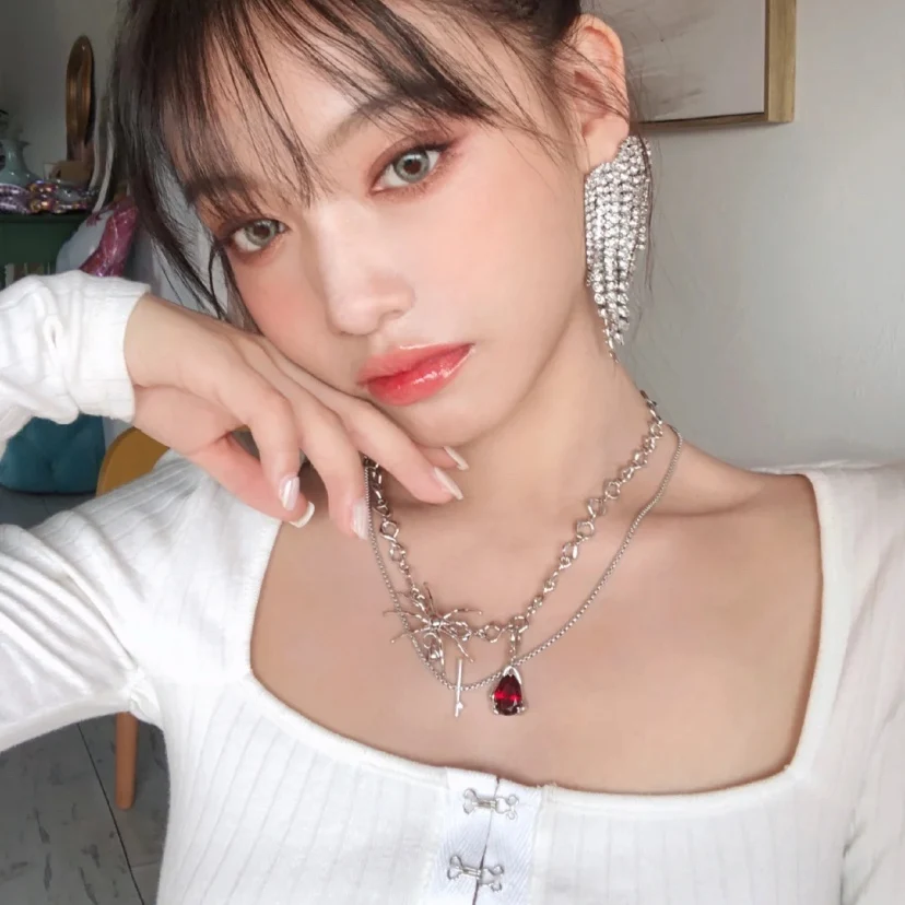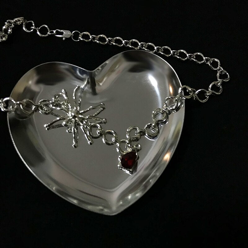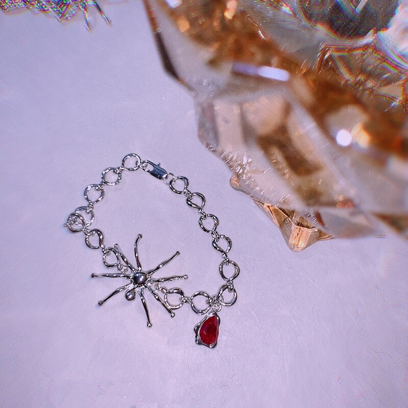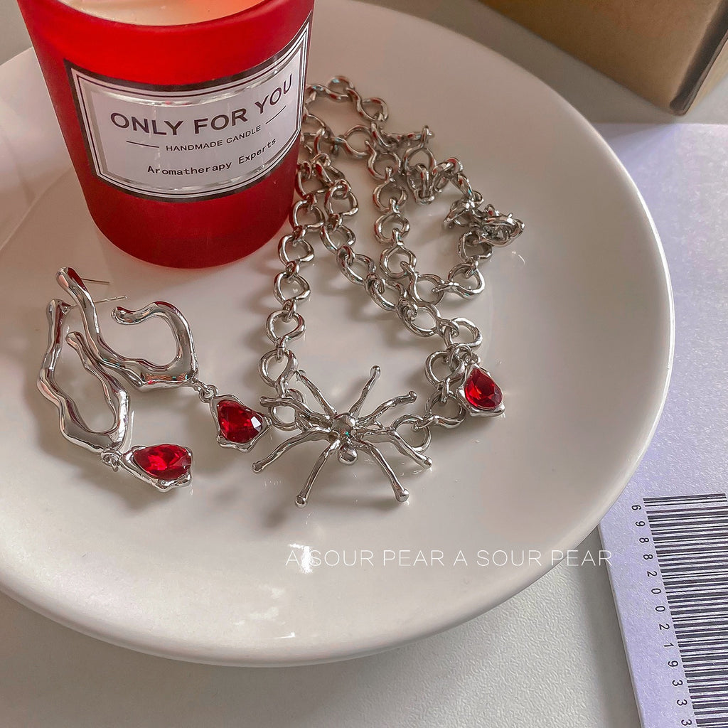 HUANZHI 2021 Punk Hip Hop Red Rhinestone Pendants Spider Metal Geometric Unisex Couple Insect Necklace for Women Men Party