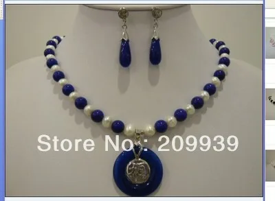 Jewellery white pearl blue jade earrings pendant necklace fine jewelry