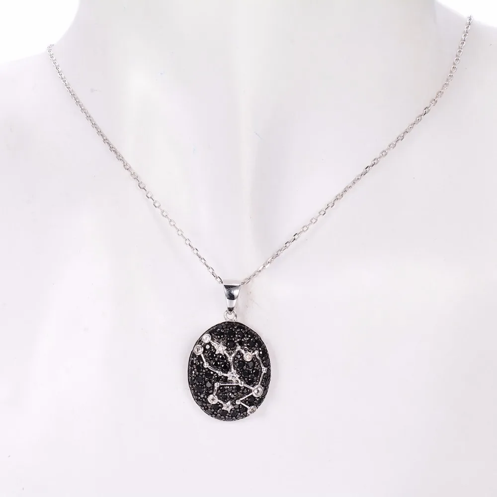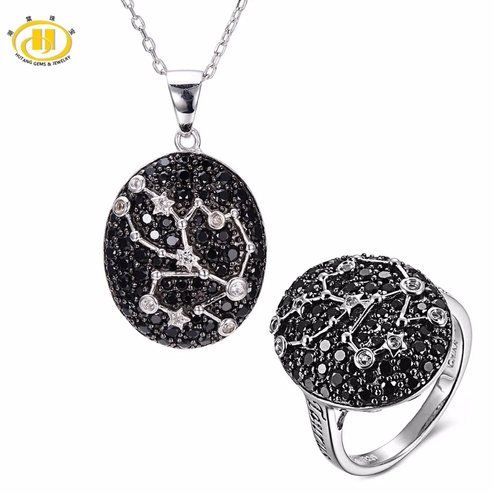 Hutang Taurus Black Spinel Pendant & Ring Solid 925 Sterling Silver Sign Fine Jewelry Sets For Gift 20th April Until 22th May