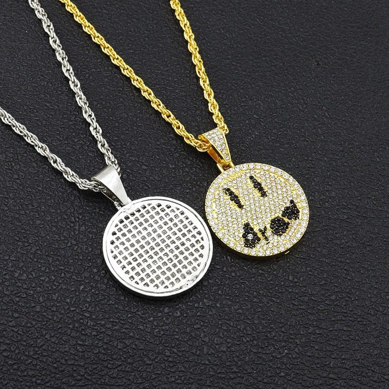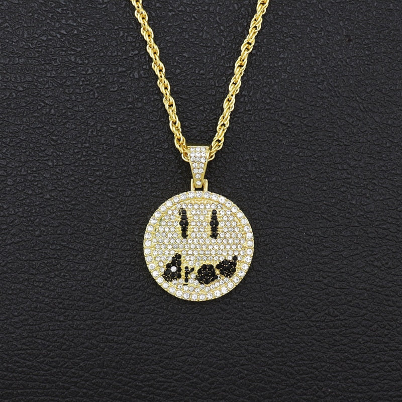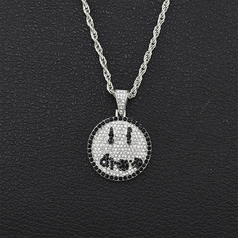 Ice Out Drew Smiley Face Diamond Pendant Necklace Men Women Couple Hip-hop Party Jewelry Chain Necklace Gift Accessories