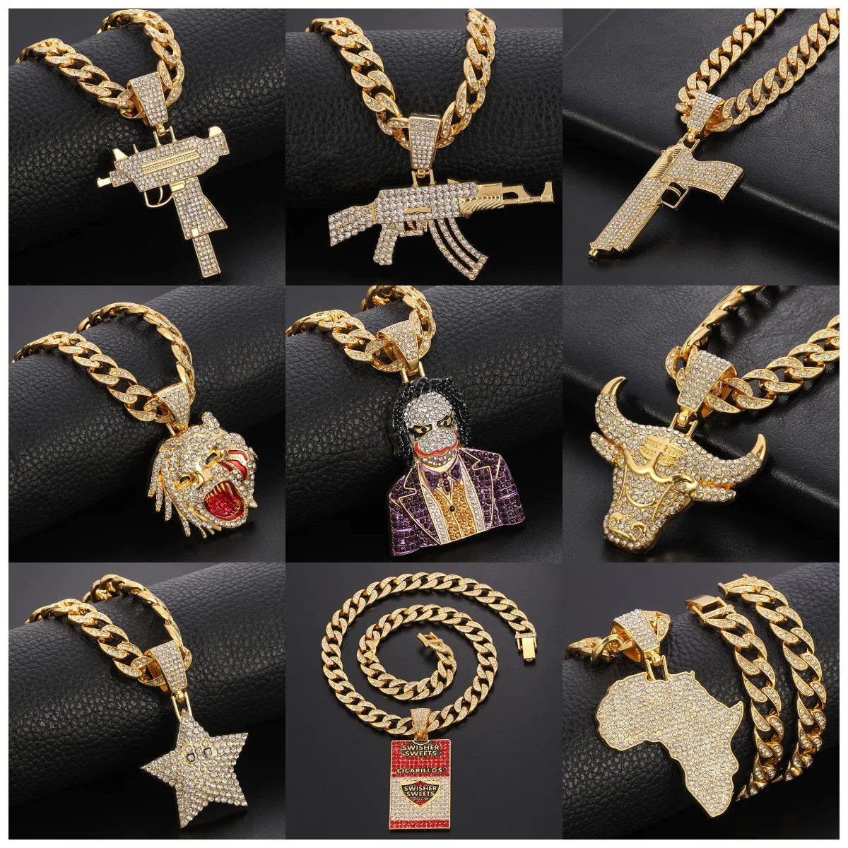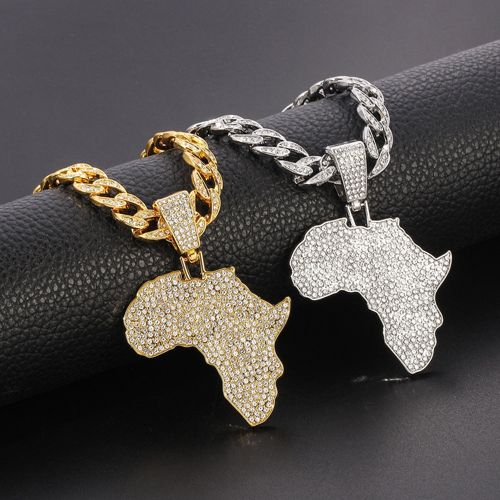 Iced Out Miami Cuban Link Chain Map Of Africa Pendant Necklace For Men's Chains Hip Hop Jewelry Halloween Clown On The Neck