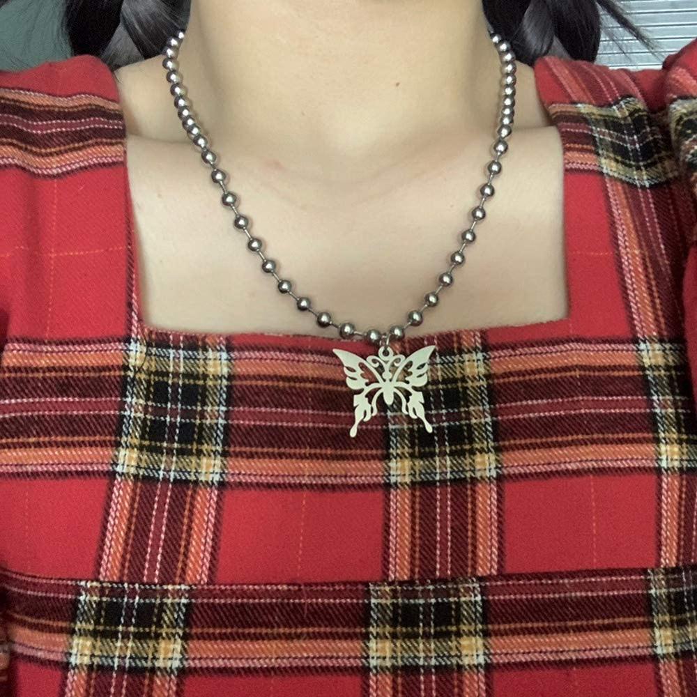 iGirl style butterfly Necklace Stainless Steel big ball chain Harajuku Female Symbol punk Gothic Streetwear choker Necklace for