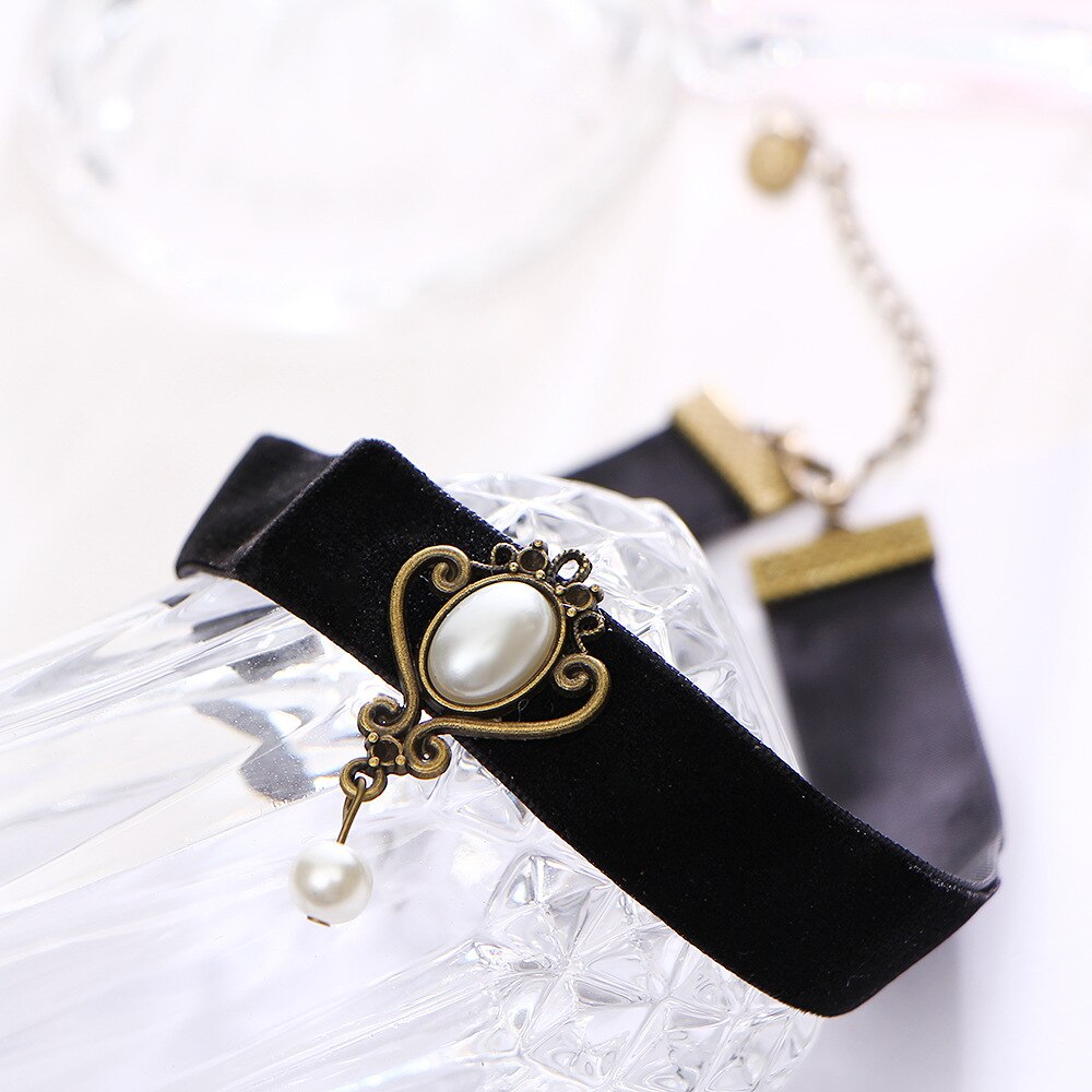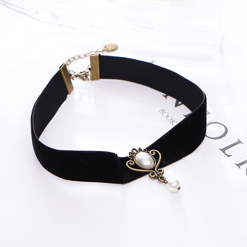 Imitation Pearls Tattoo Necklace Leather Flannel Choker Necklace Creative Design Ancient Bronze Jewelry Love Beauty Accessories