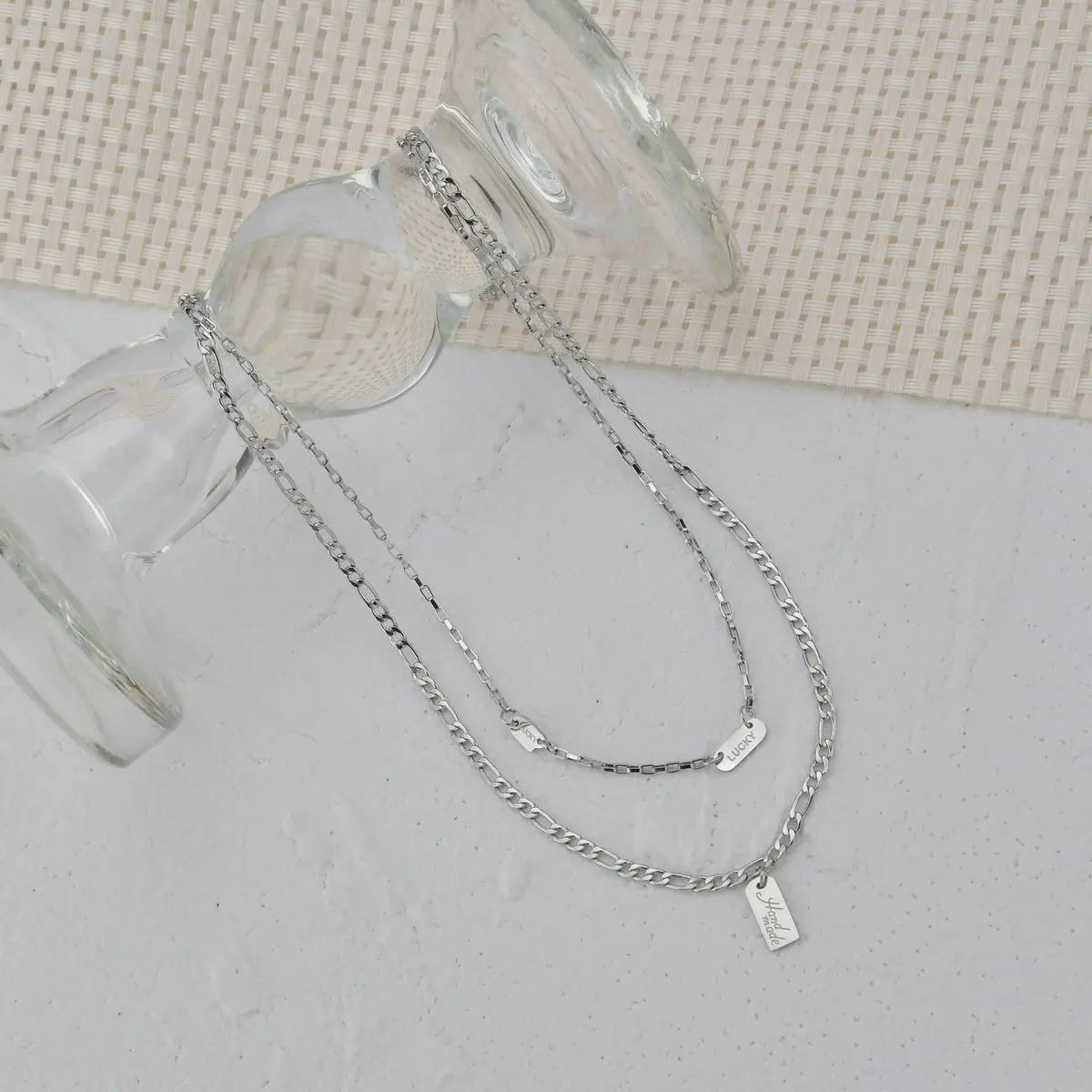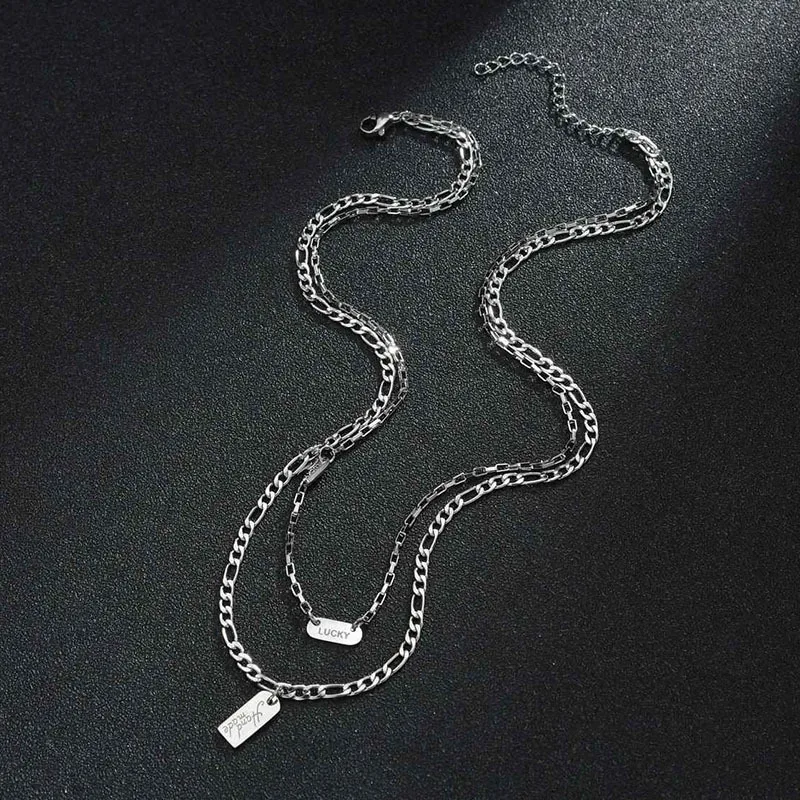 In Stock Double Chain Lucky Letter Charms Nk Chain Street Styles Stainless Steel Tag Pendant Double Layer Figaro Chain