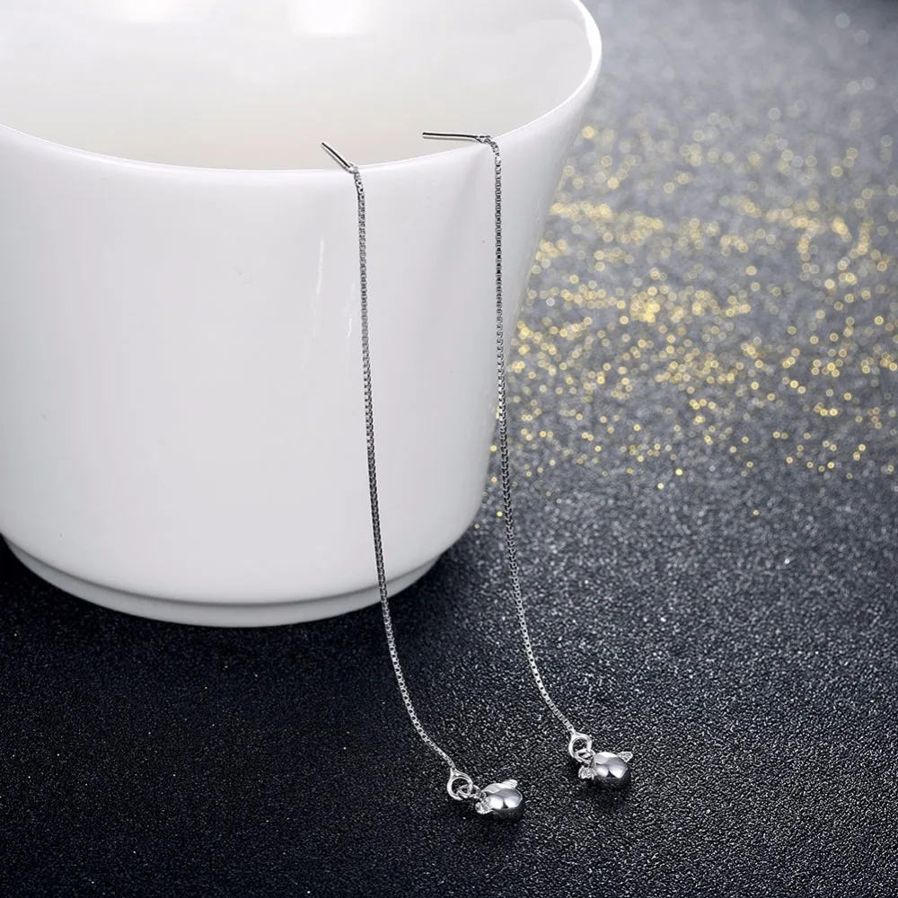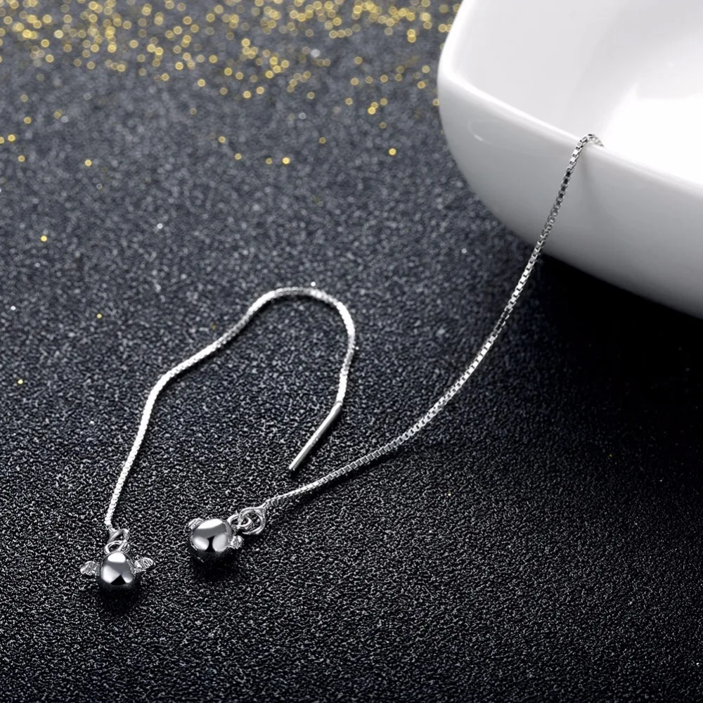 Delicate Long Chain 925 Sterling Silver Drop Earrings with Angle Pendant Fine Jewelry for Women Dangle Brincos Party Gift