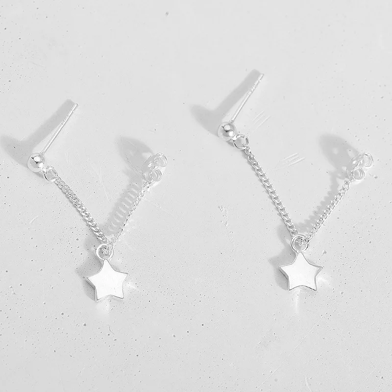 New Elegant Double Side Chain Drop Earrings S925 Sterling Silver Star Pendant Dangle Brincos Delicate Jewelry for Women