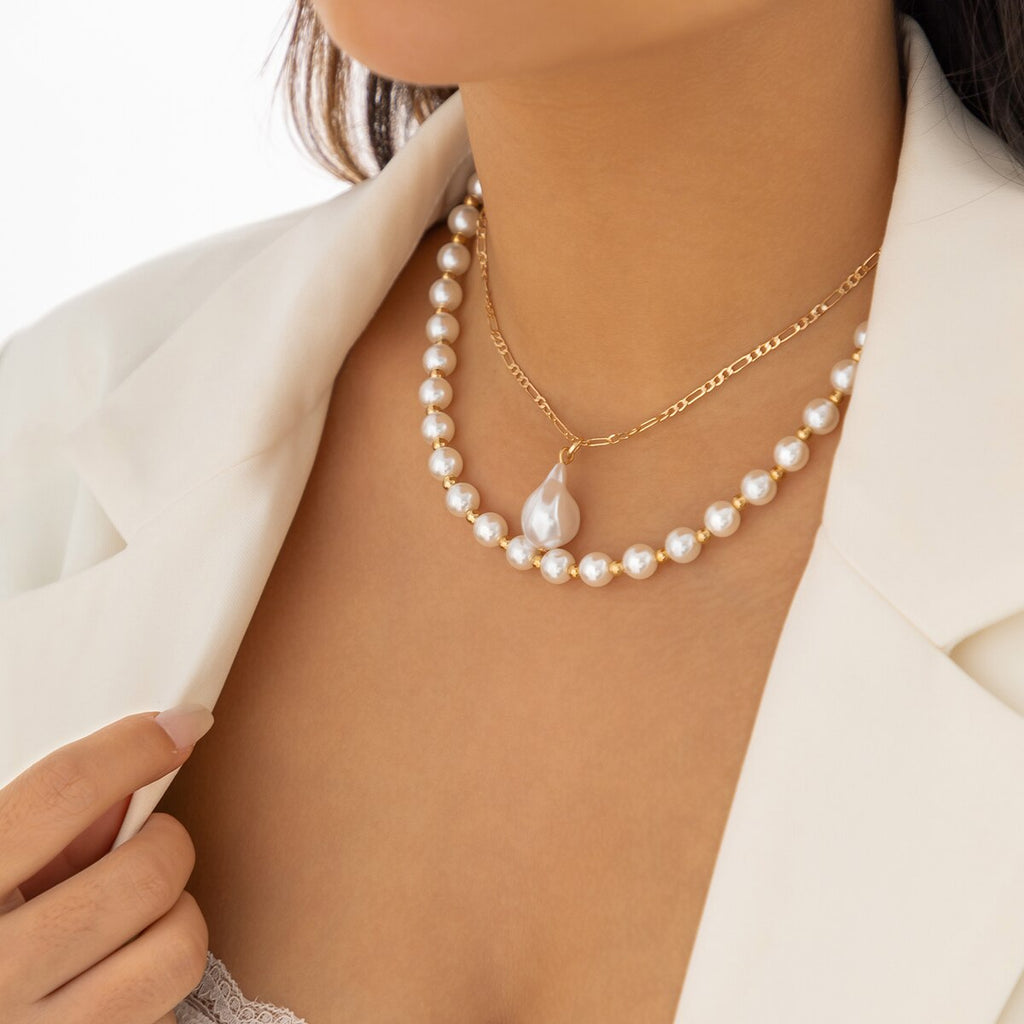 Female/Men Neck Necklaces Collier : Imitation Pearl Pendant Necklaces
