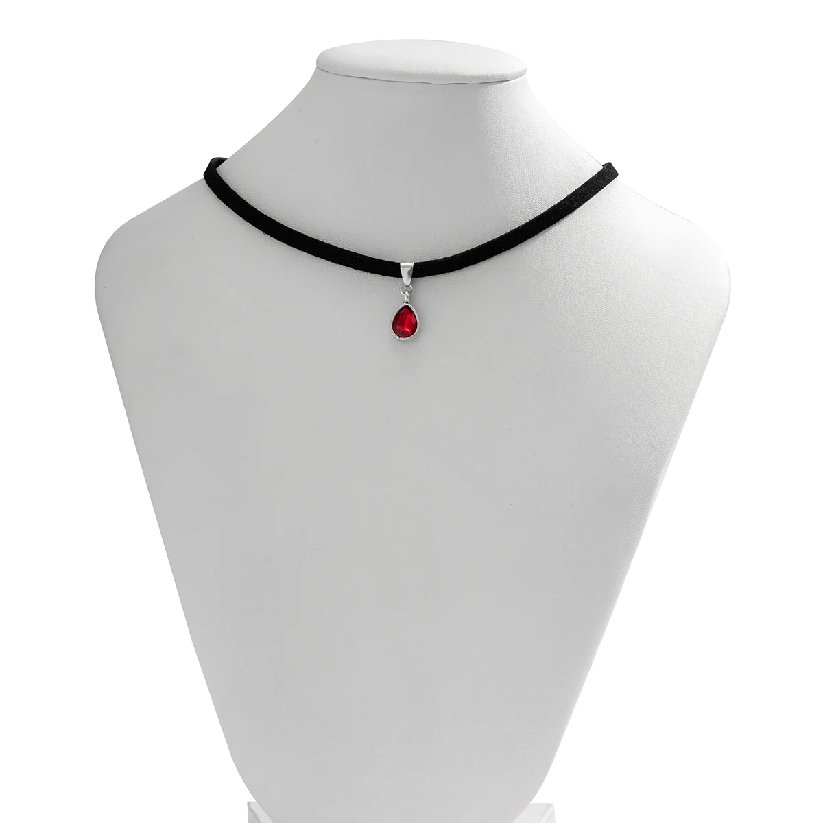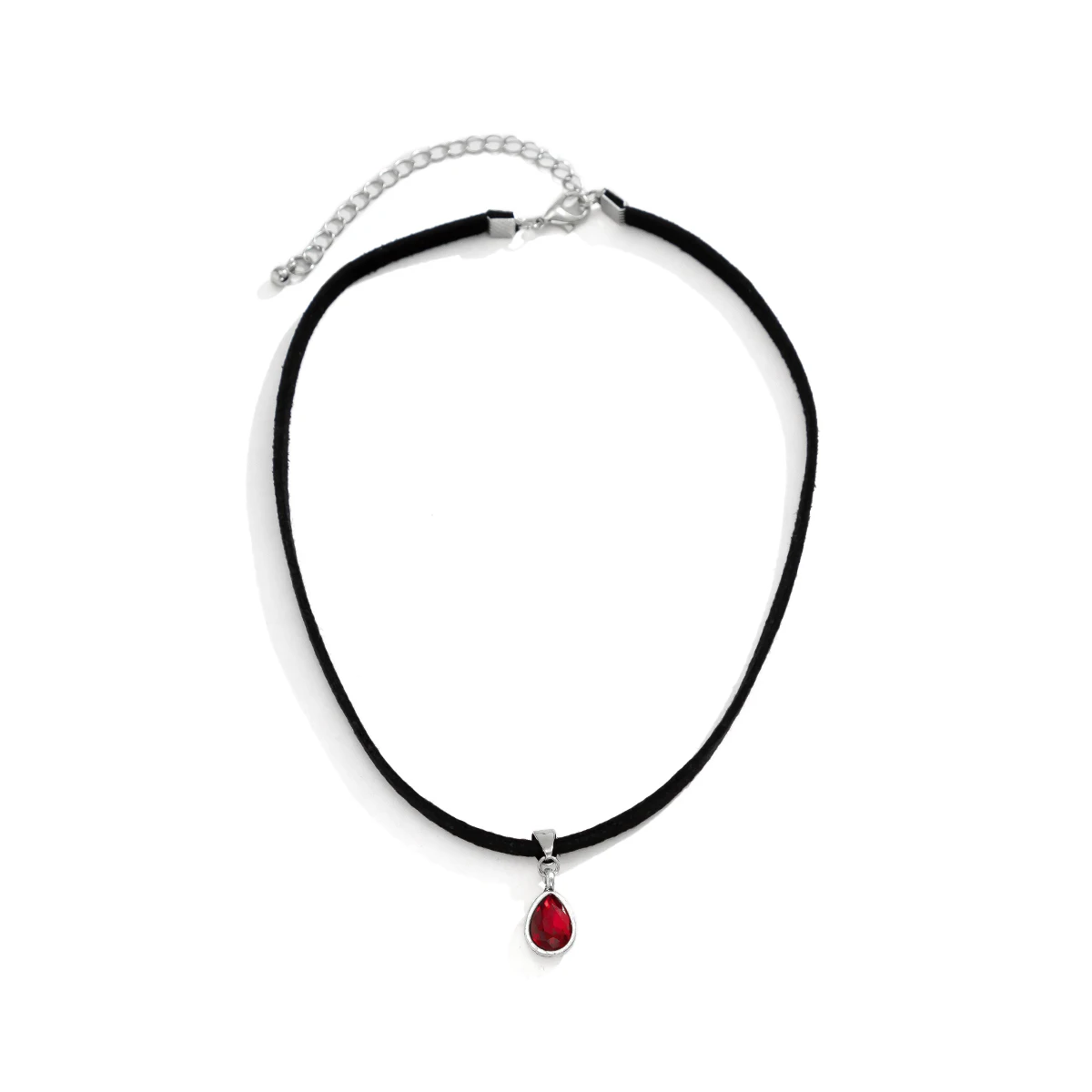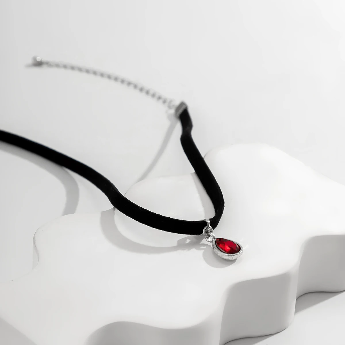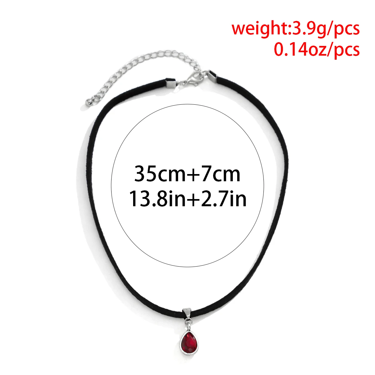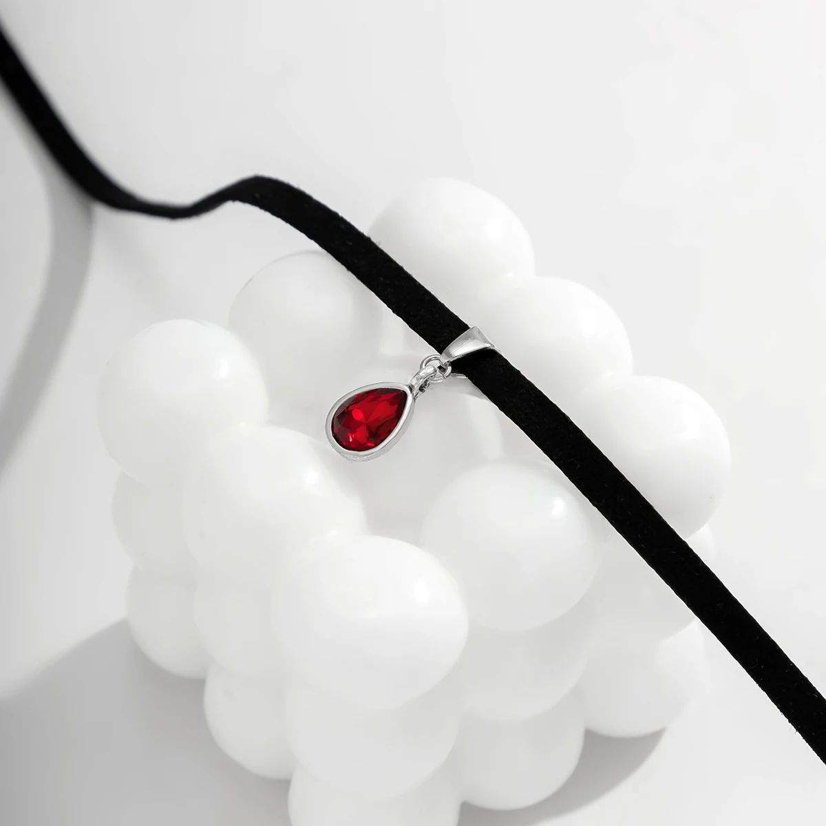 IngeSight.Z Gothic Red Water Drop Pendants Glass Crystal Chain Necklace for Women Korea Black Velvet Collar Jewelry Gift