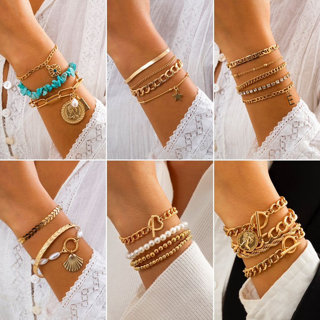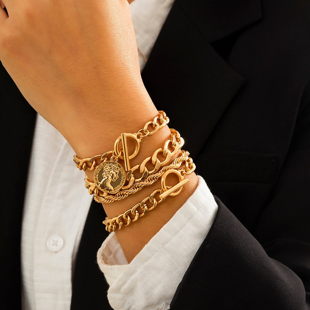 Color : Gold Color/Silver Color Link Chain Bracelets Set