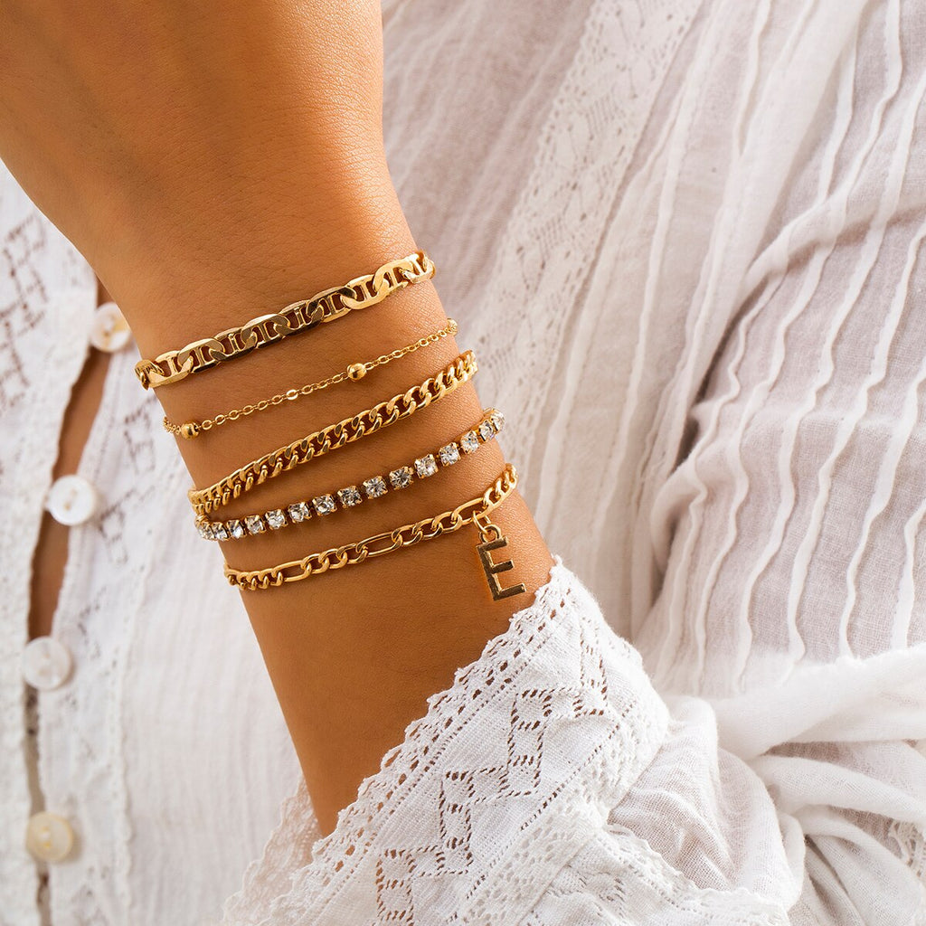 Chunky Thick Bracelets : Initial Letter E Pendant Bracelets