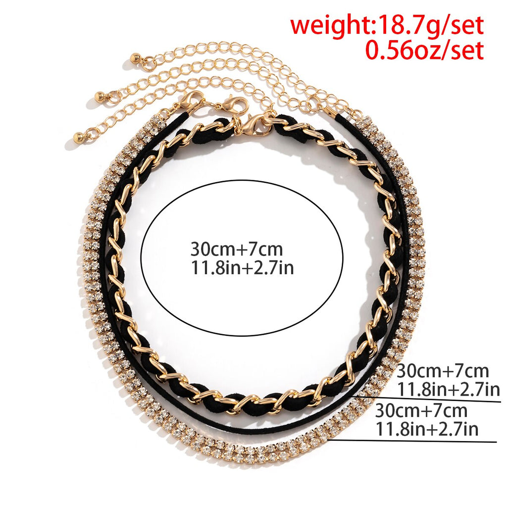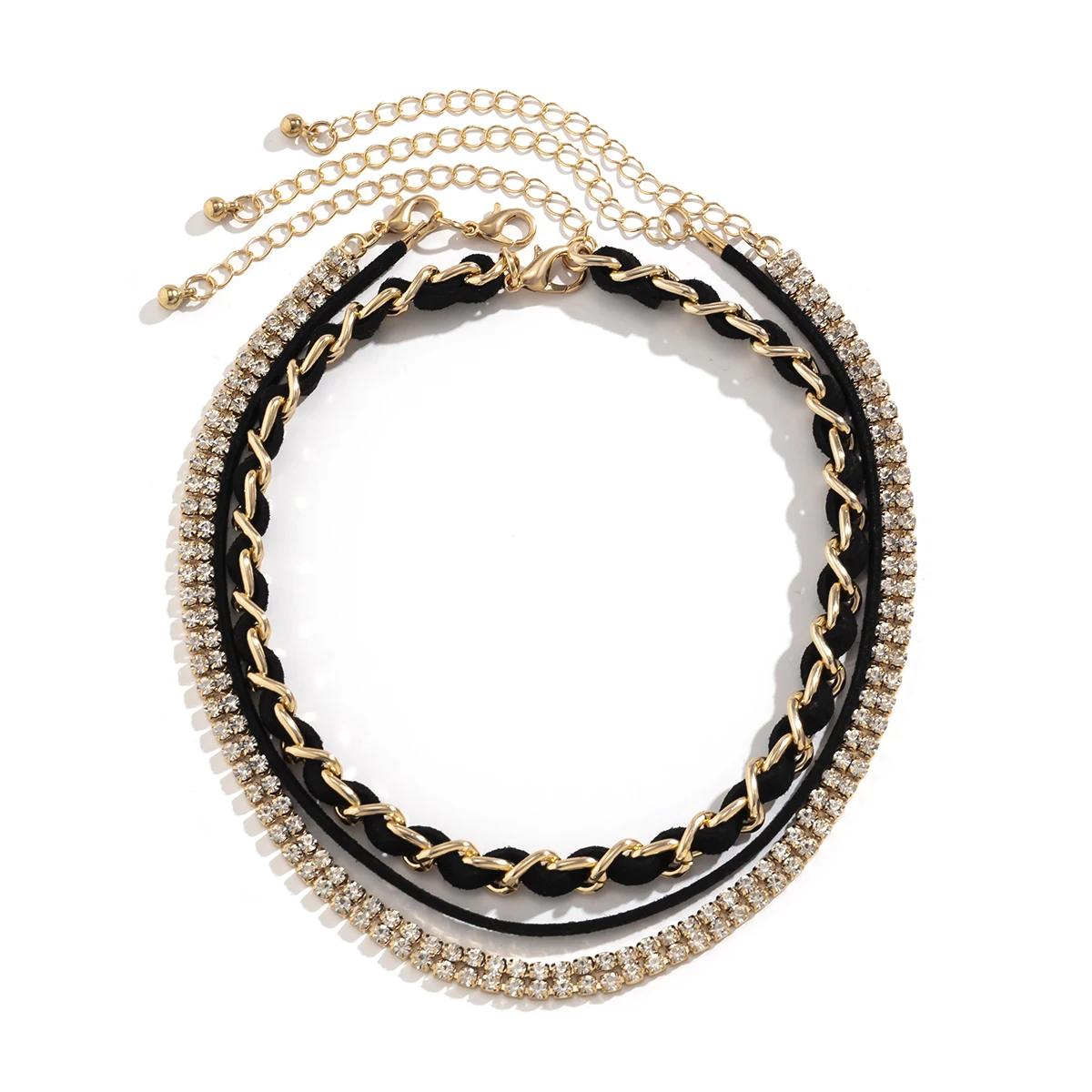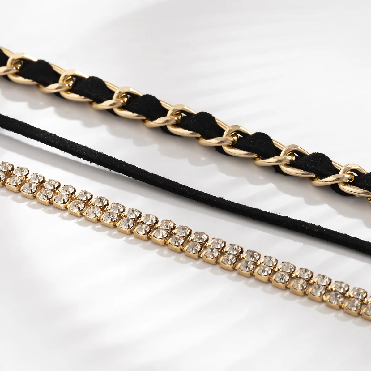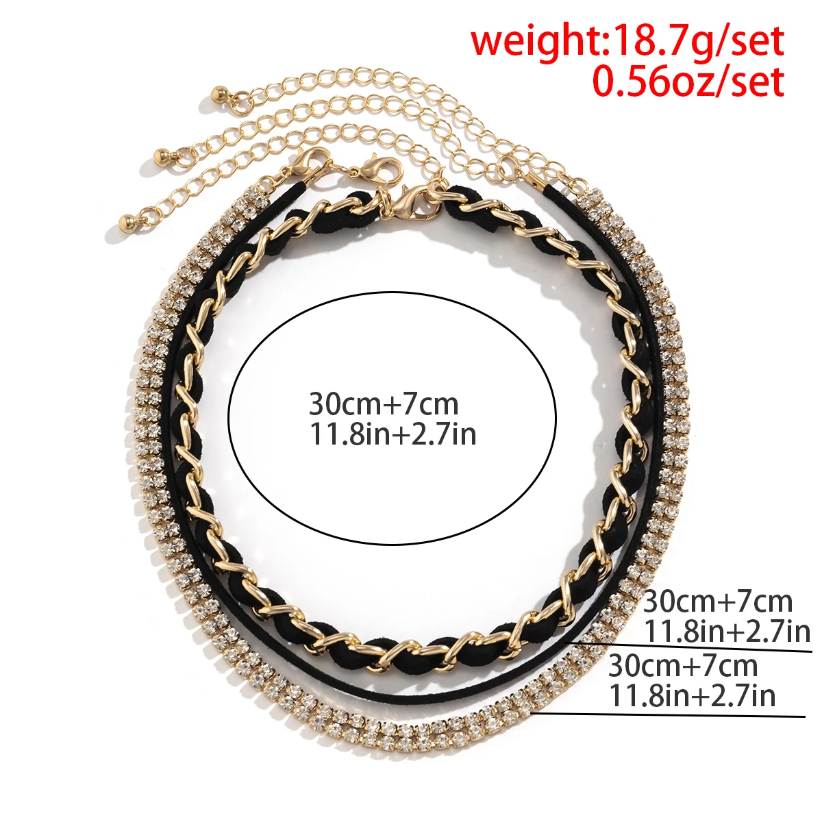 Female Choker Necklace Collar : 3pcs Rhinestone Velvet Clavicle Collar Necklace