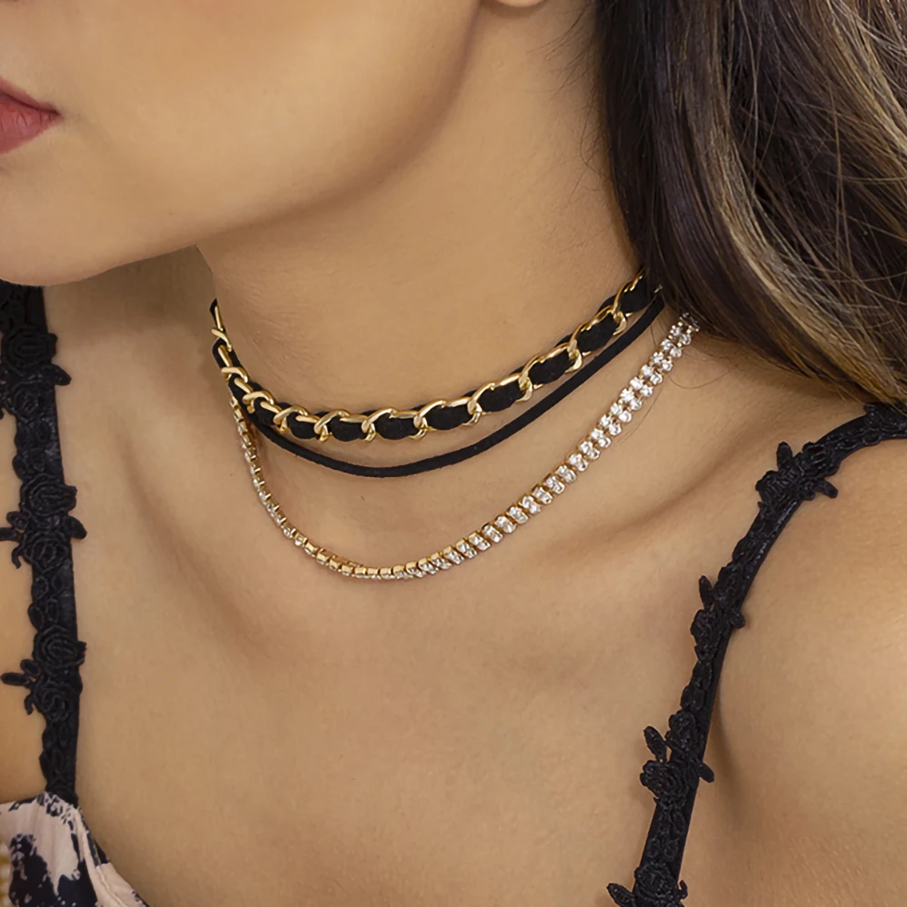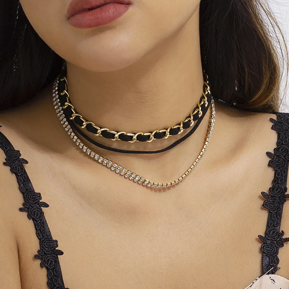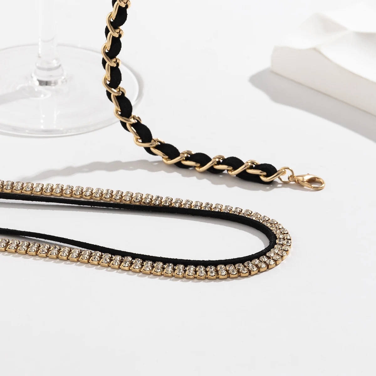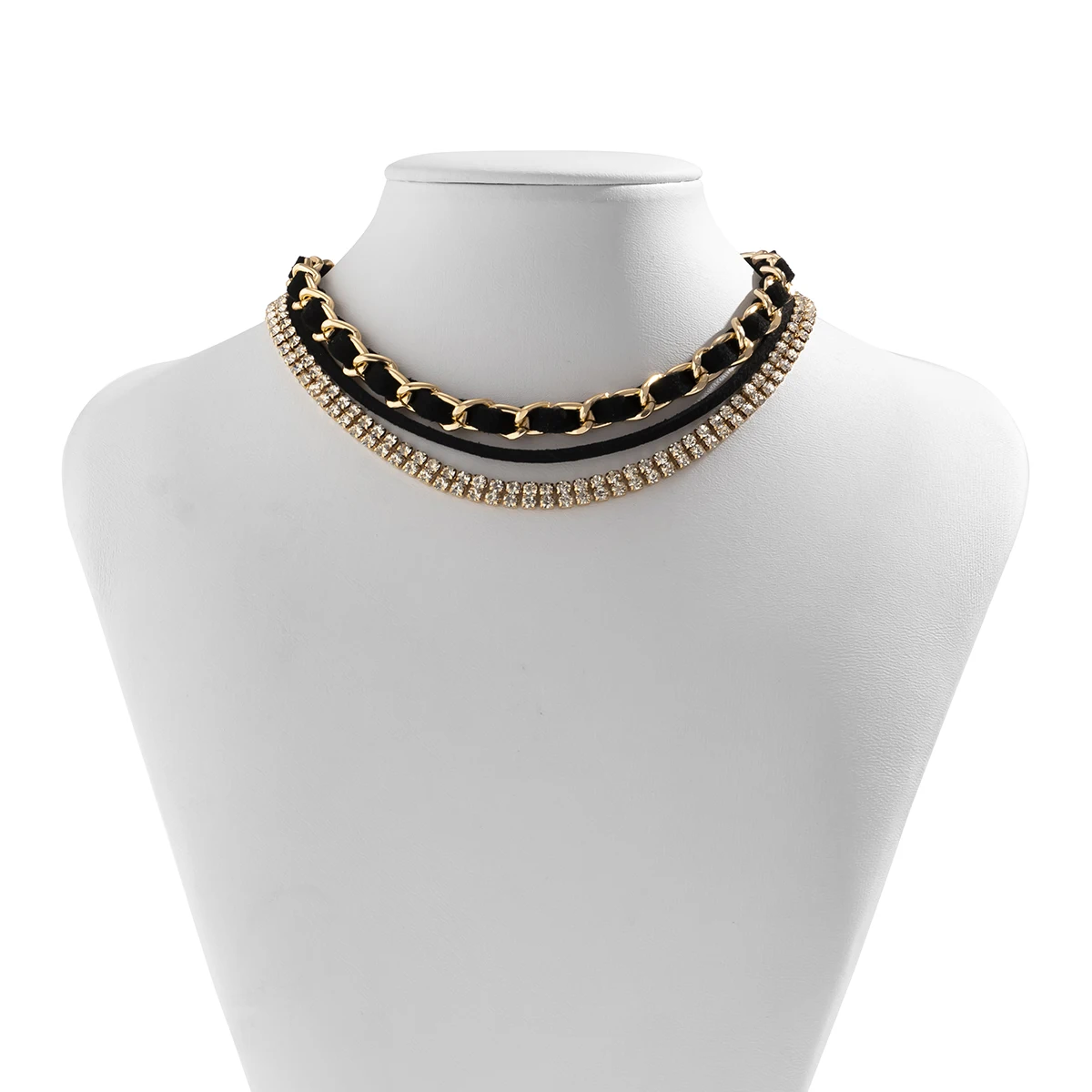 Female Choker Necklace Collar : 3pcs Rhinestone Velvet Clavicle Collar Necklace