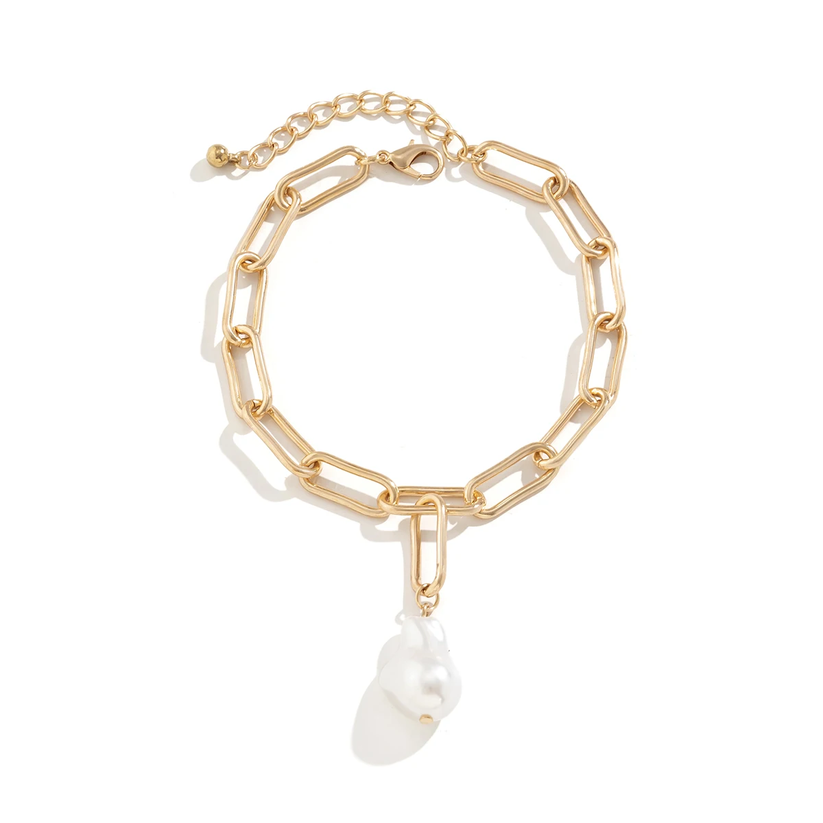 IngeSight.Z Kpop Baroque Irregular Pearl Pendant Anklet for Women Punk Gold Color Link Chain Barefoot Jewelry Gifts 2023