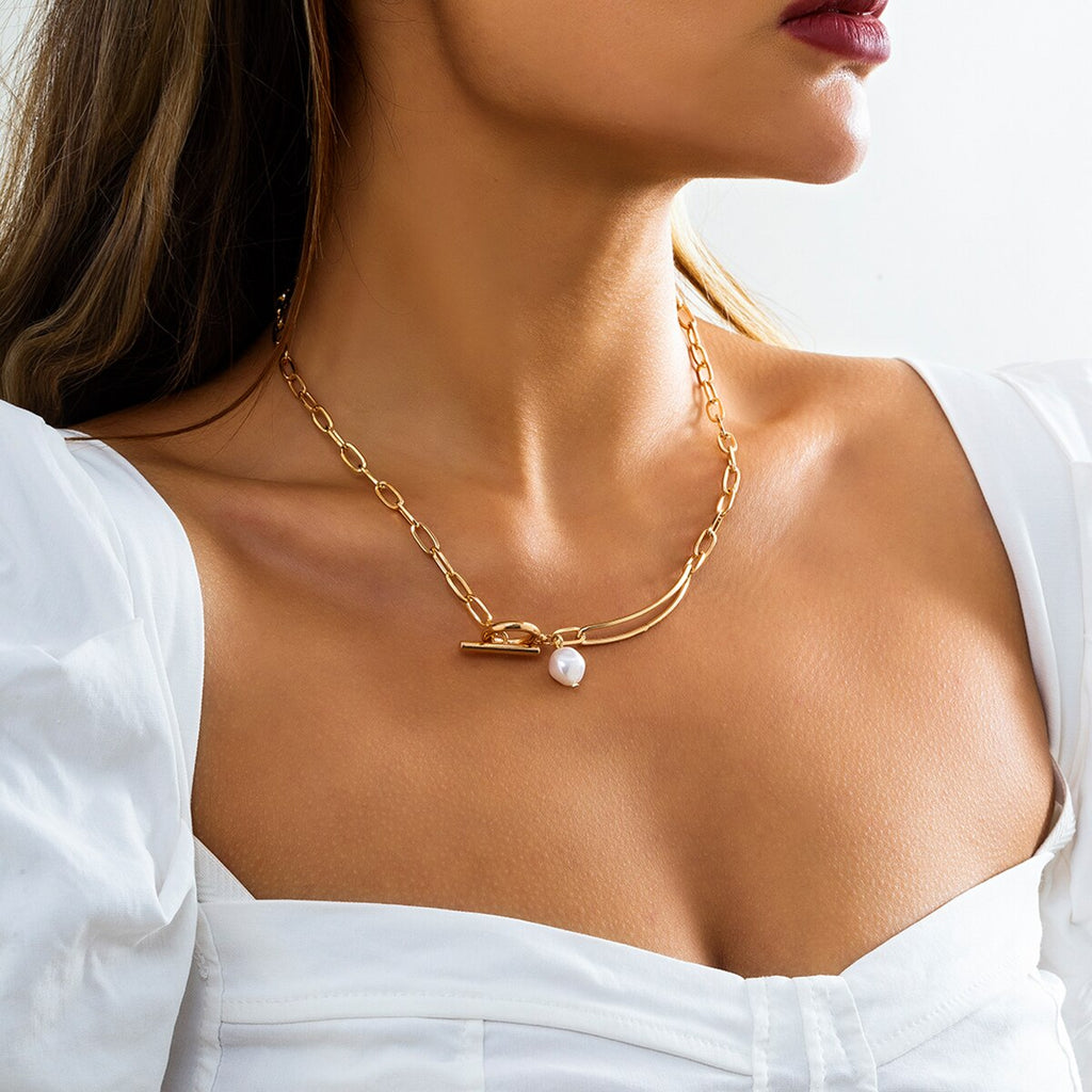 Color : Gold Color/Silver Color Link Chain Necklaces
