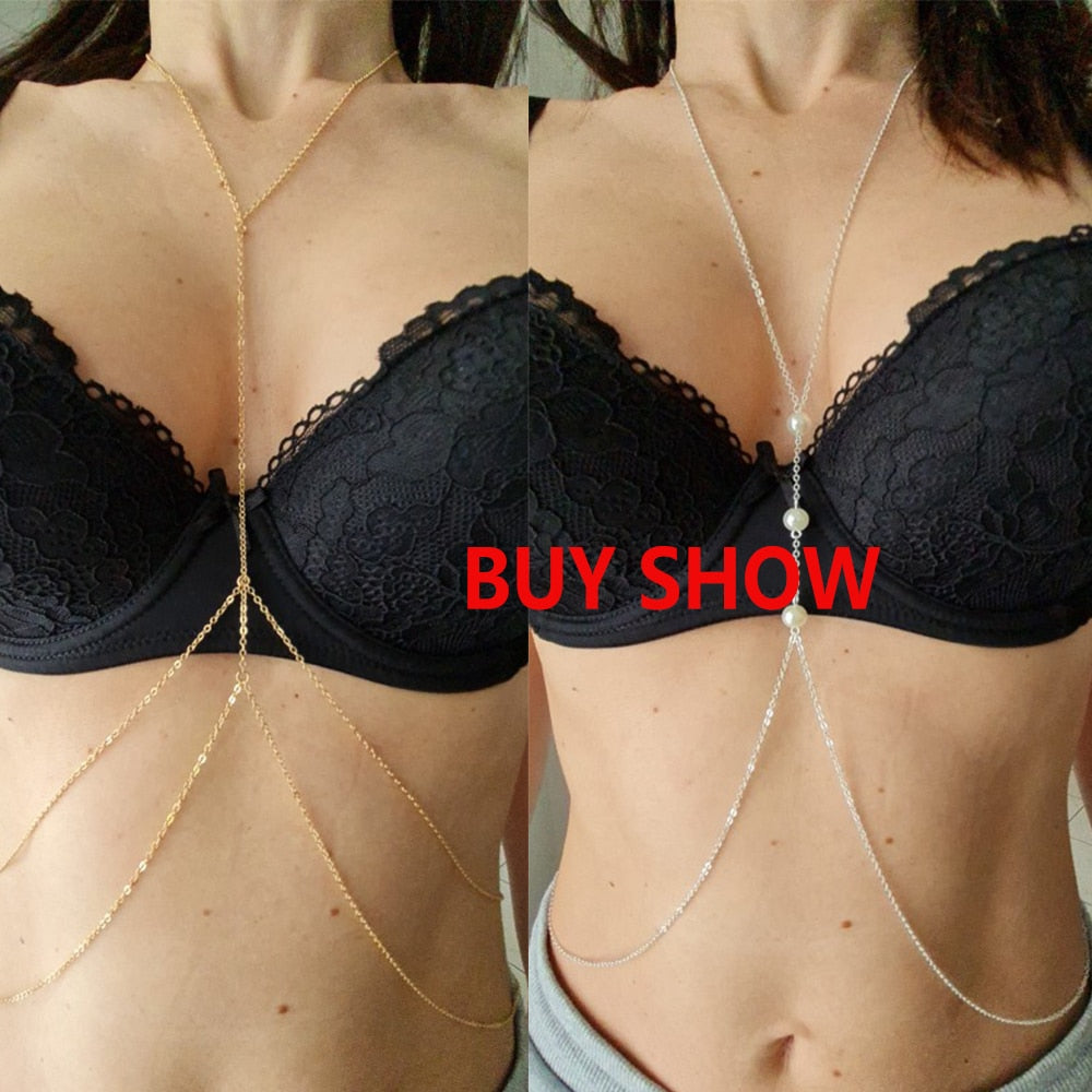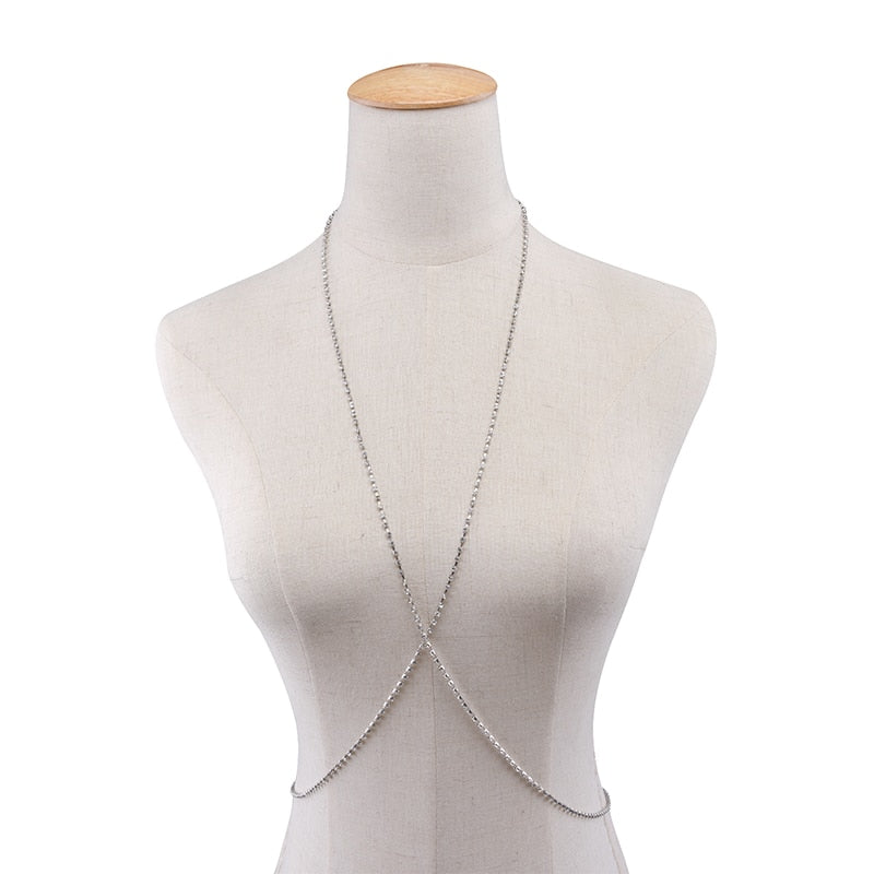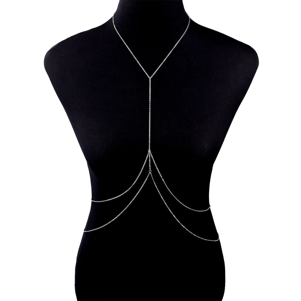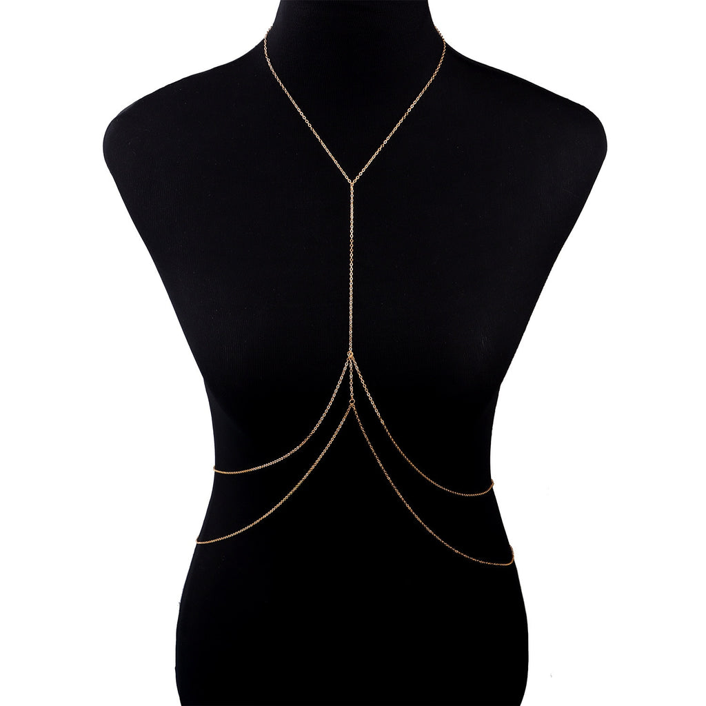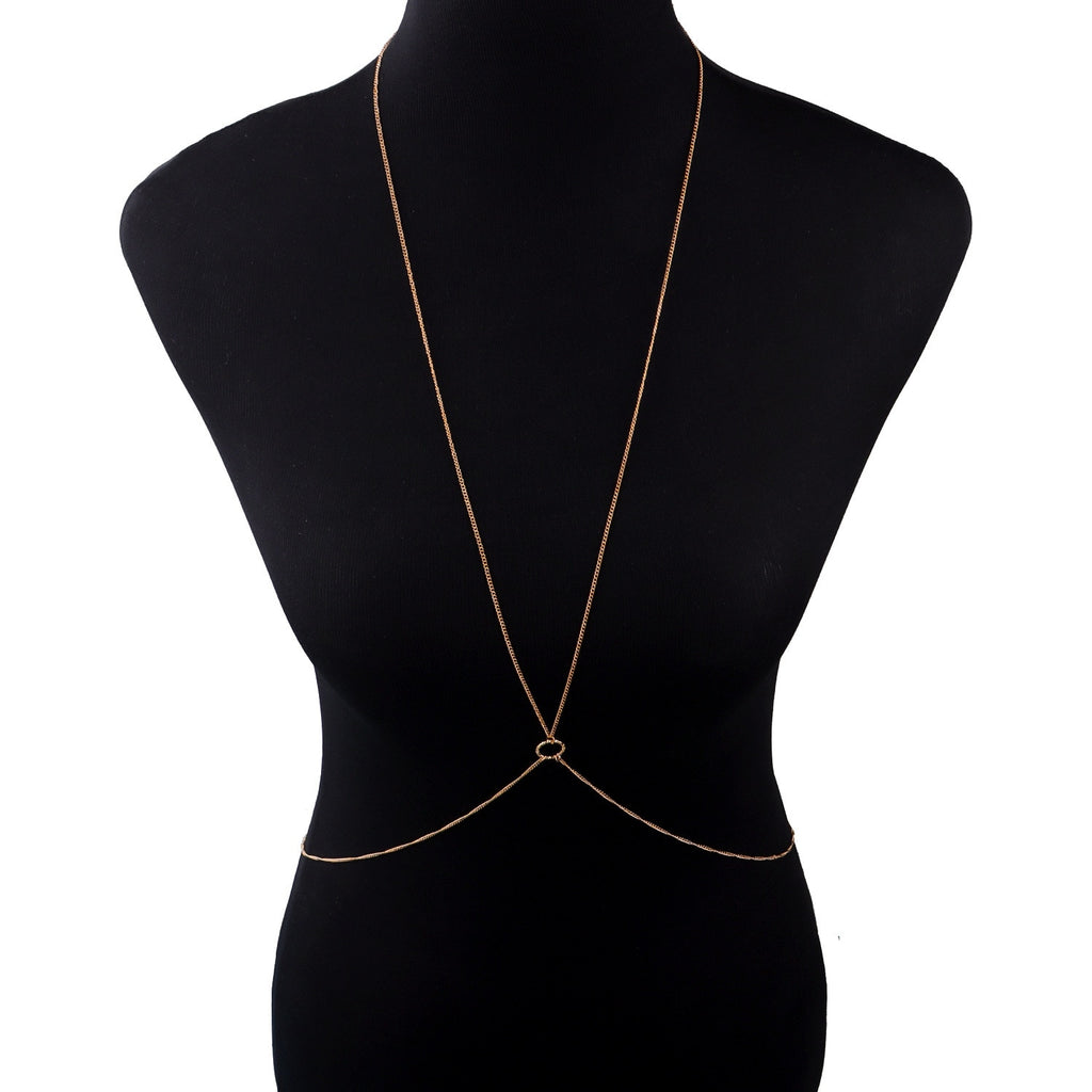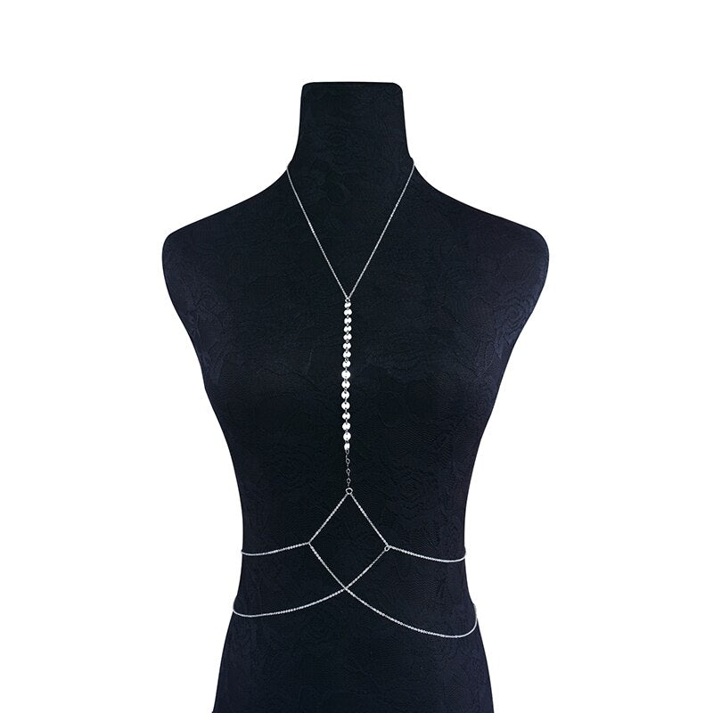 IngeSight.Z Simple Style Cross Chest Belly Body Chain for Women Sexy Copper Sequins Bikini Beach Necklace Waist Chain Jewelry