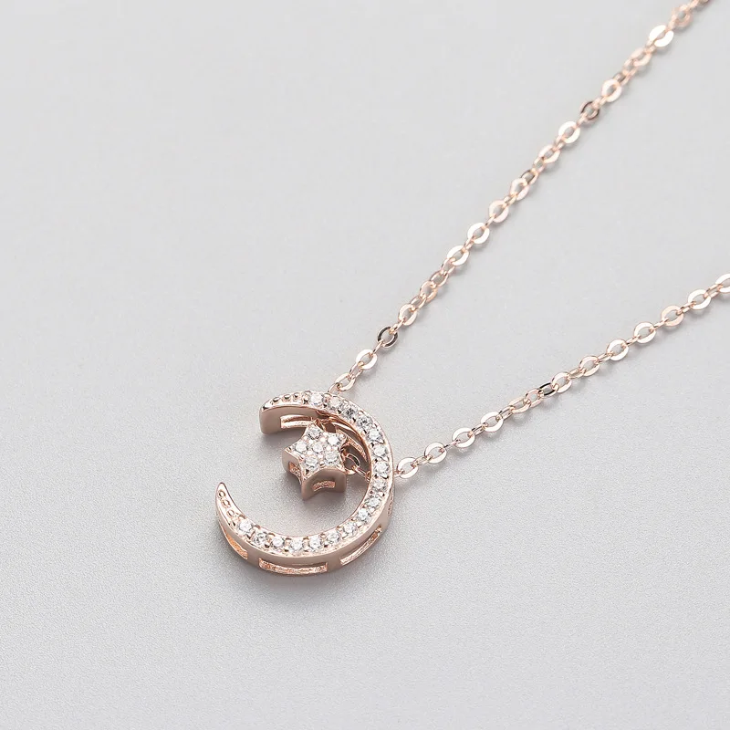 Exquisite Zircon Moon Star Pendant Necklace for Charm Women Wedding 925 Sterling Silver Fine Jewelry Accessories Gift