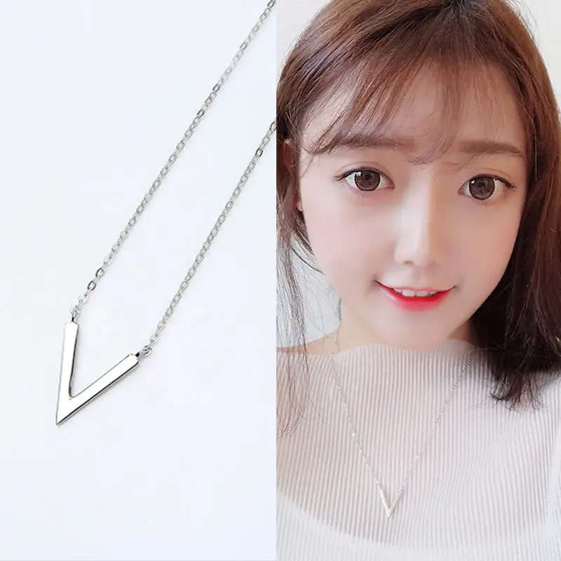 Geometric V Letter Pendant Necklace for Women Fashion 925 Sterling Silver Fine Jewelry Birthd Party Accessories Gift