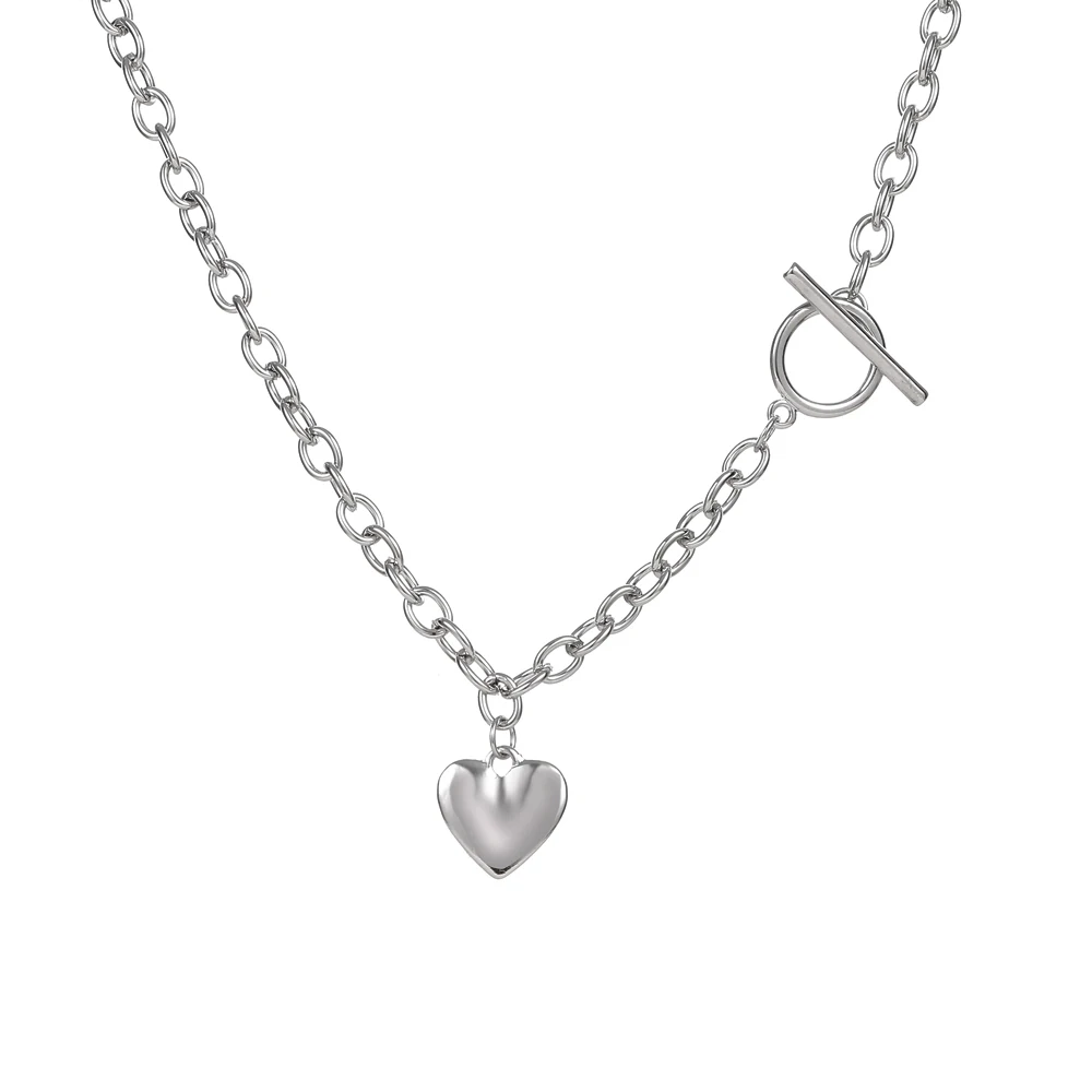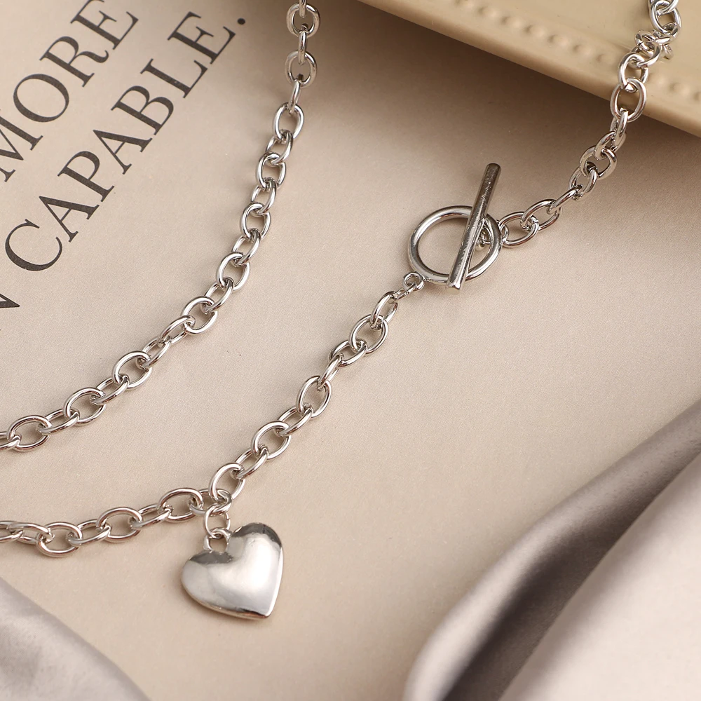IPARAM Punk Metal Heart OT Buckle Chain Necklace Women's Retro Silver Color Thick Chain Collar Pendant Necklace Bohemian Jewelry