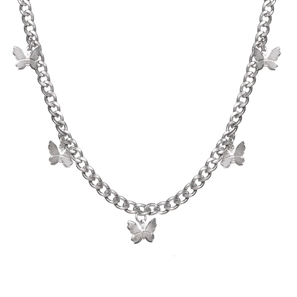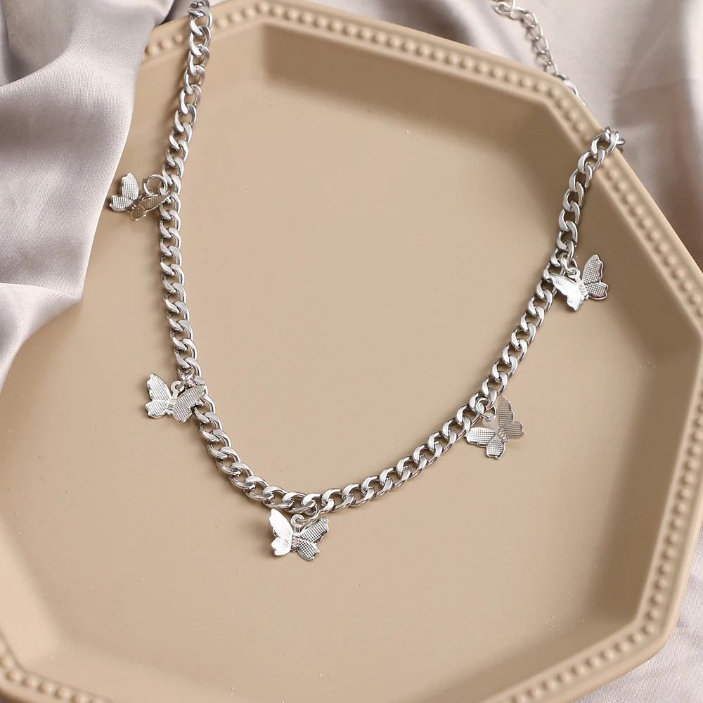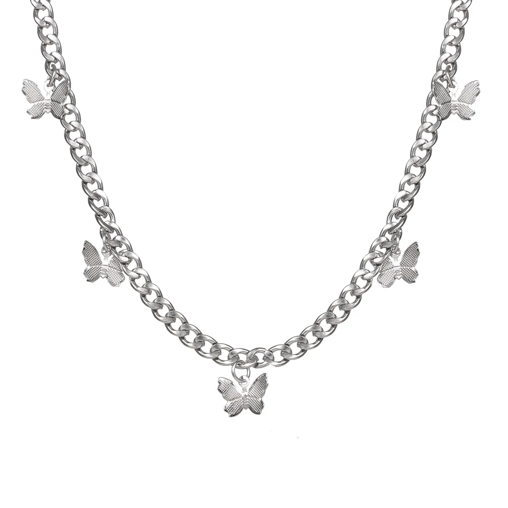 IPARAM Punk Metal Thick Chain Butterfly Choker Necklace Women Retro Animal Butterfly Short Necklace Collar Jewelry Gift