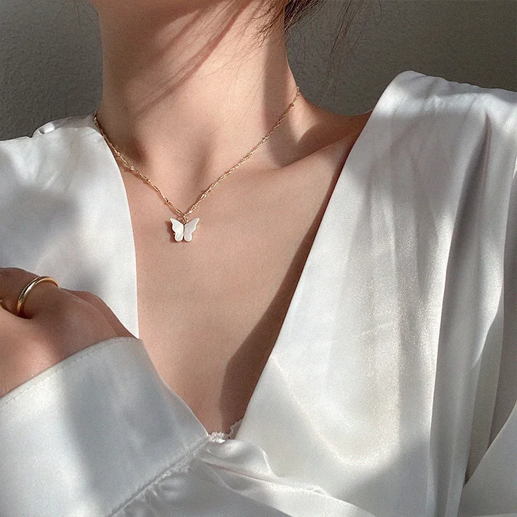 Japan and South Korea Sweet Butterfly Pendant Necklace Fairy Simple Temperament Niche Cold Wind Clavicle Chain