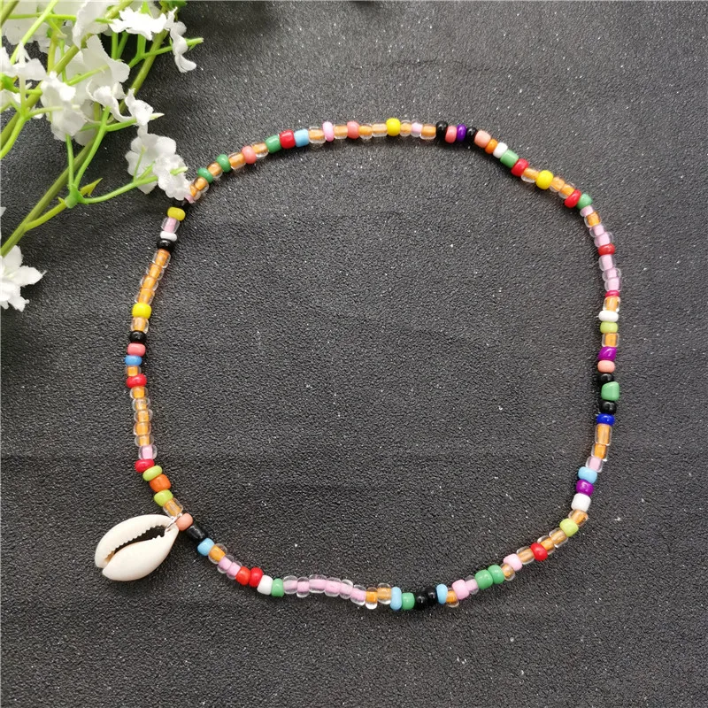 JCYMONG Elastic Line Choker Necklace For Women Colorful 4mm Beads Necklace 2021 Bohemian Natural Shell Pendant Necklace